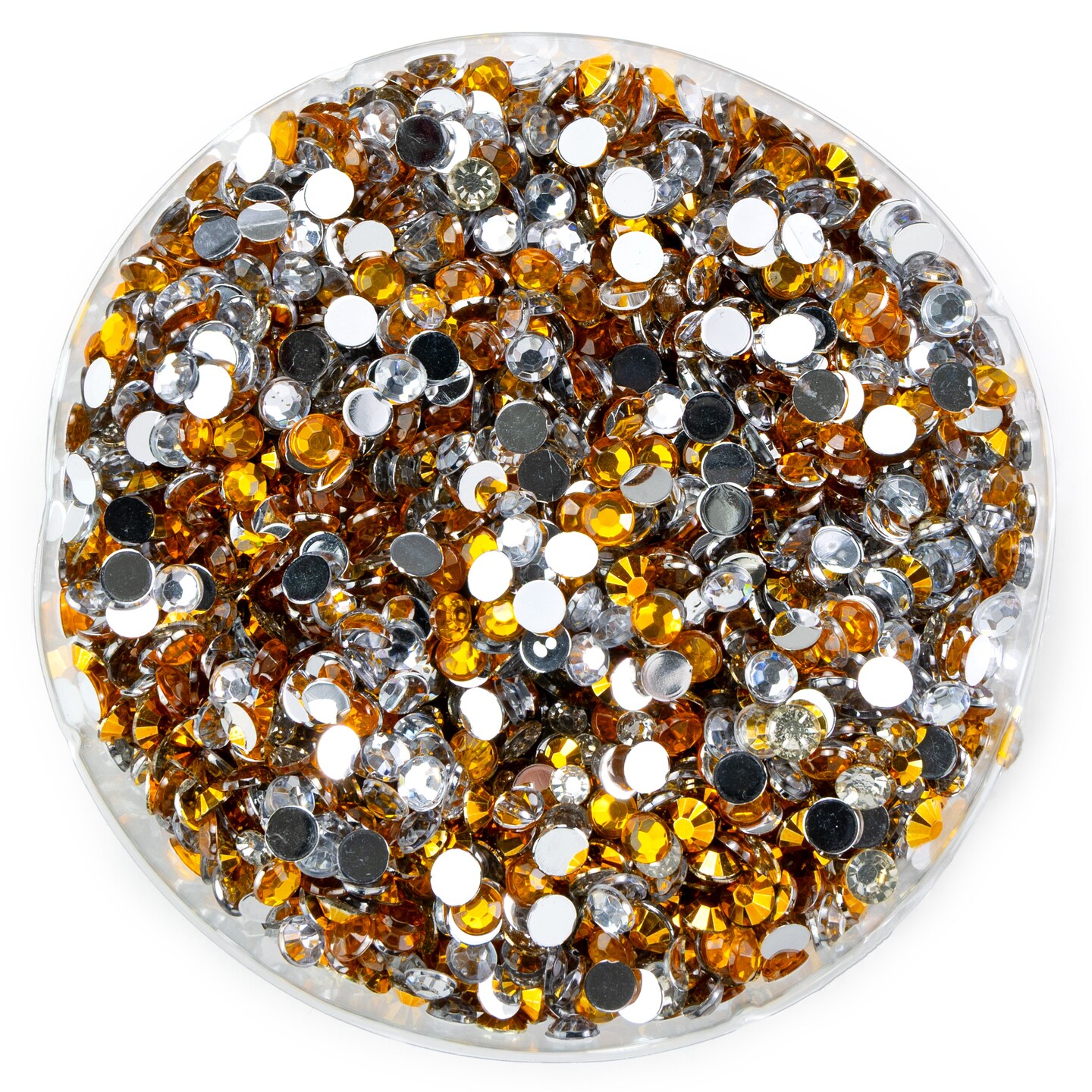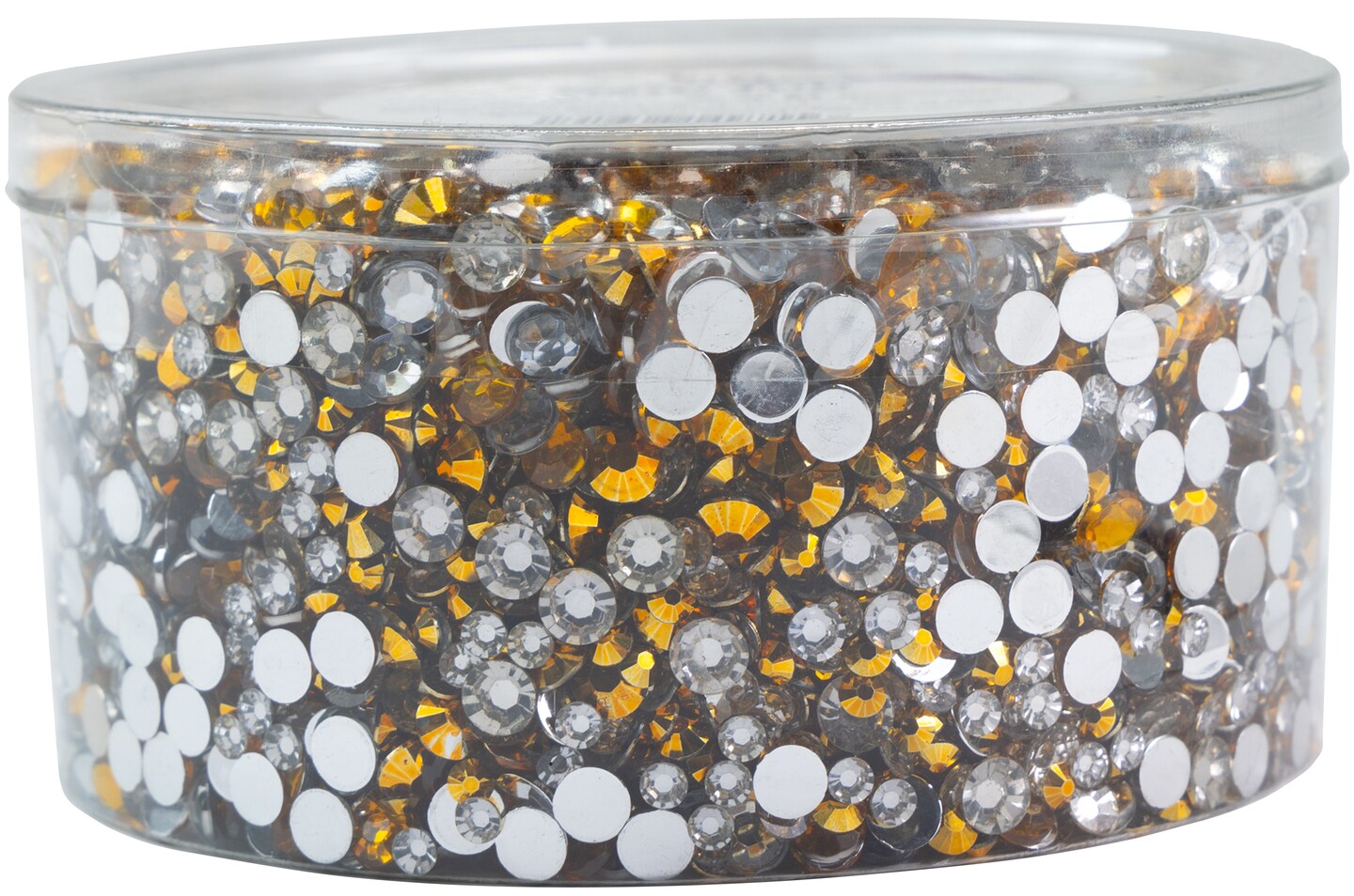 CousinDIY Gemstone Tub, 340 grams - Assorted Size Flat Back Faceted Craft Gems for Projects and Embellishments, Gold & Silver
