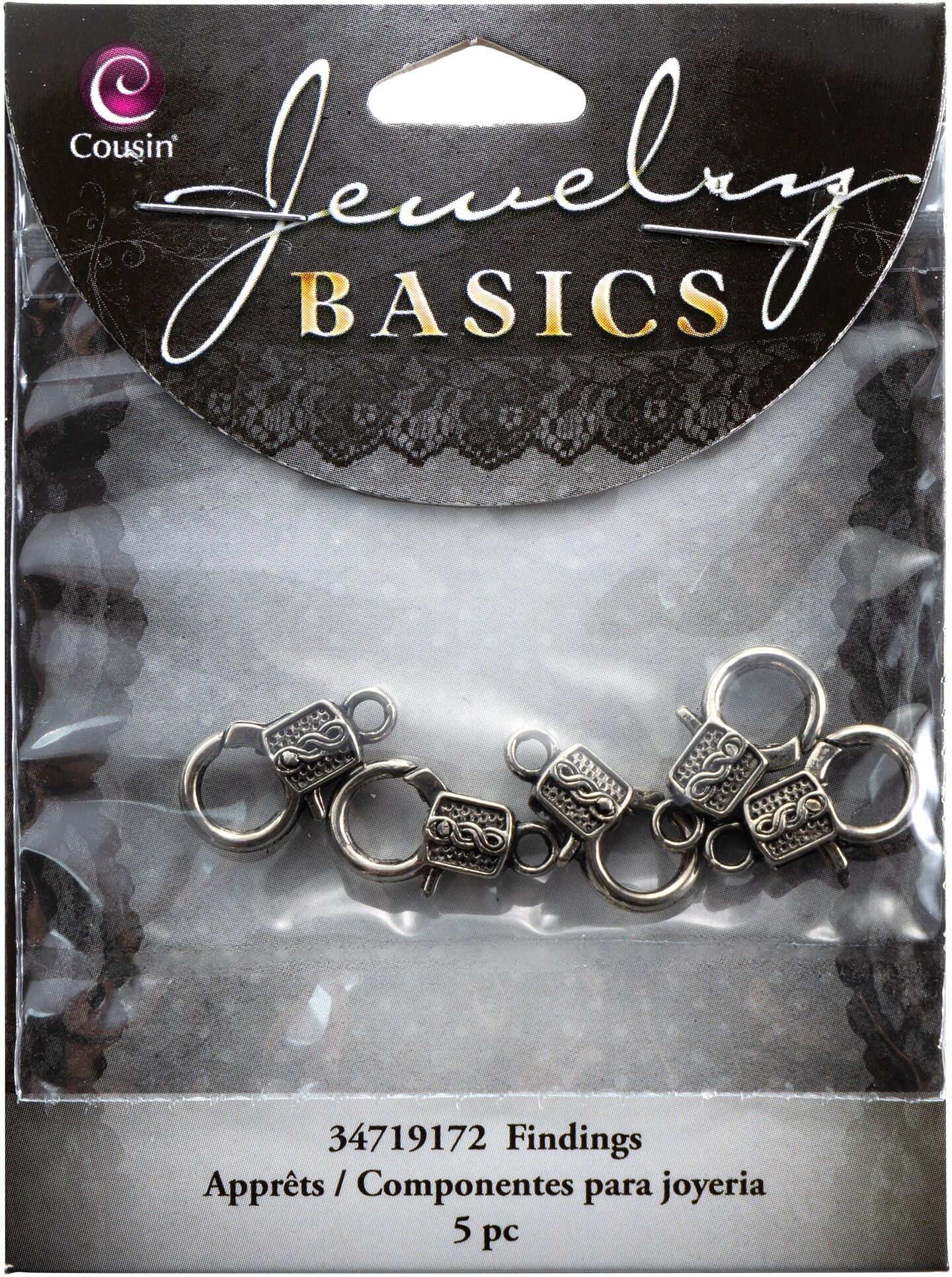 CousinDIY Jewelry Basics Medium Deco Lobster 5/Pkg-Silver