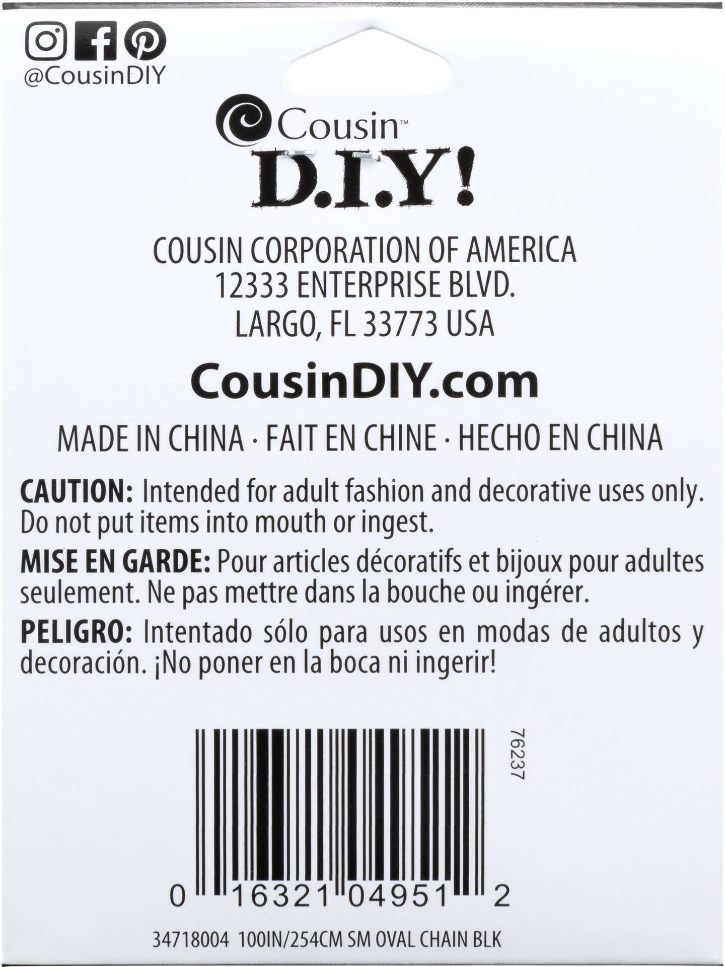 CousinDIY Jewelry Basics Metal Chain 100"-Black Small Oval