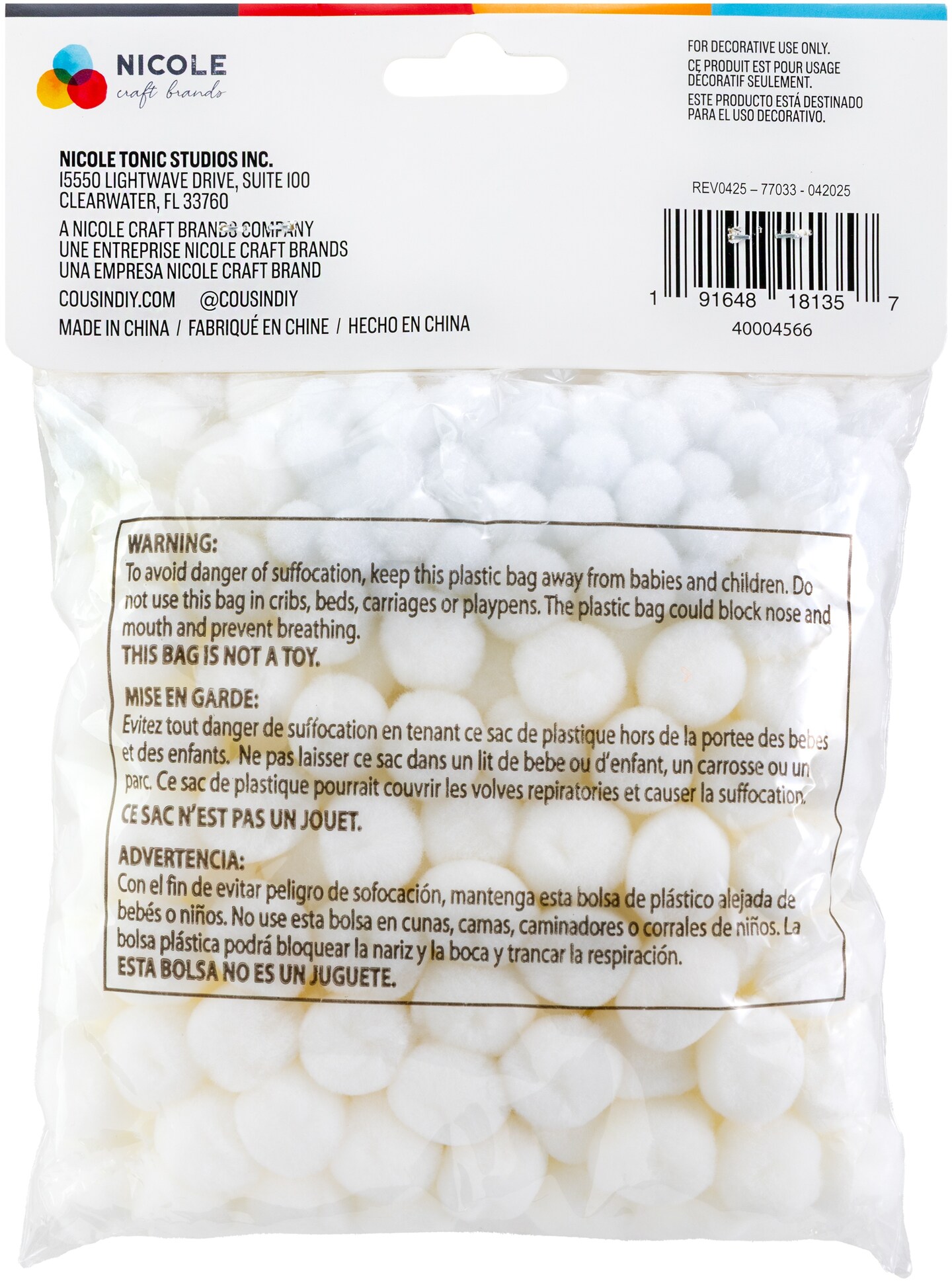 CousinDIY Pom Poms for Crafts, 300 Pieces - Assorted Size Craft Pom Pom Balls for DIY Designs and Creative Projects - White