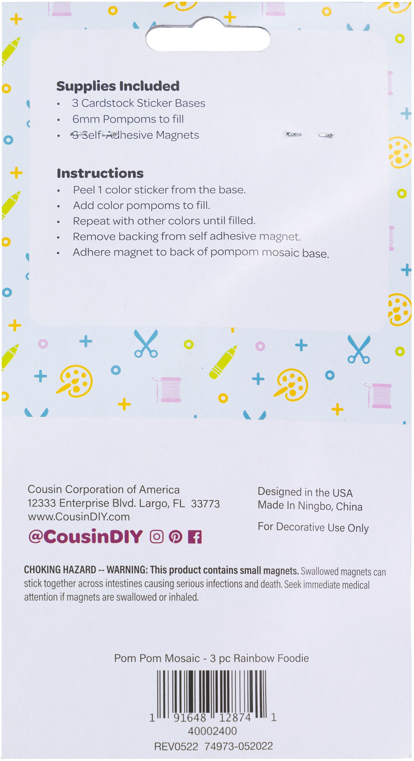 CousinDIY Pom-Pom Mosaic Kit 3/Pkg-Food