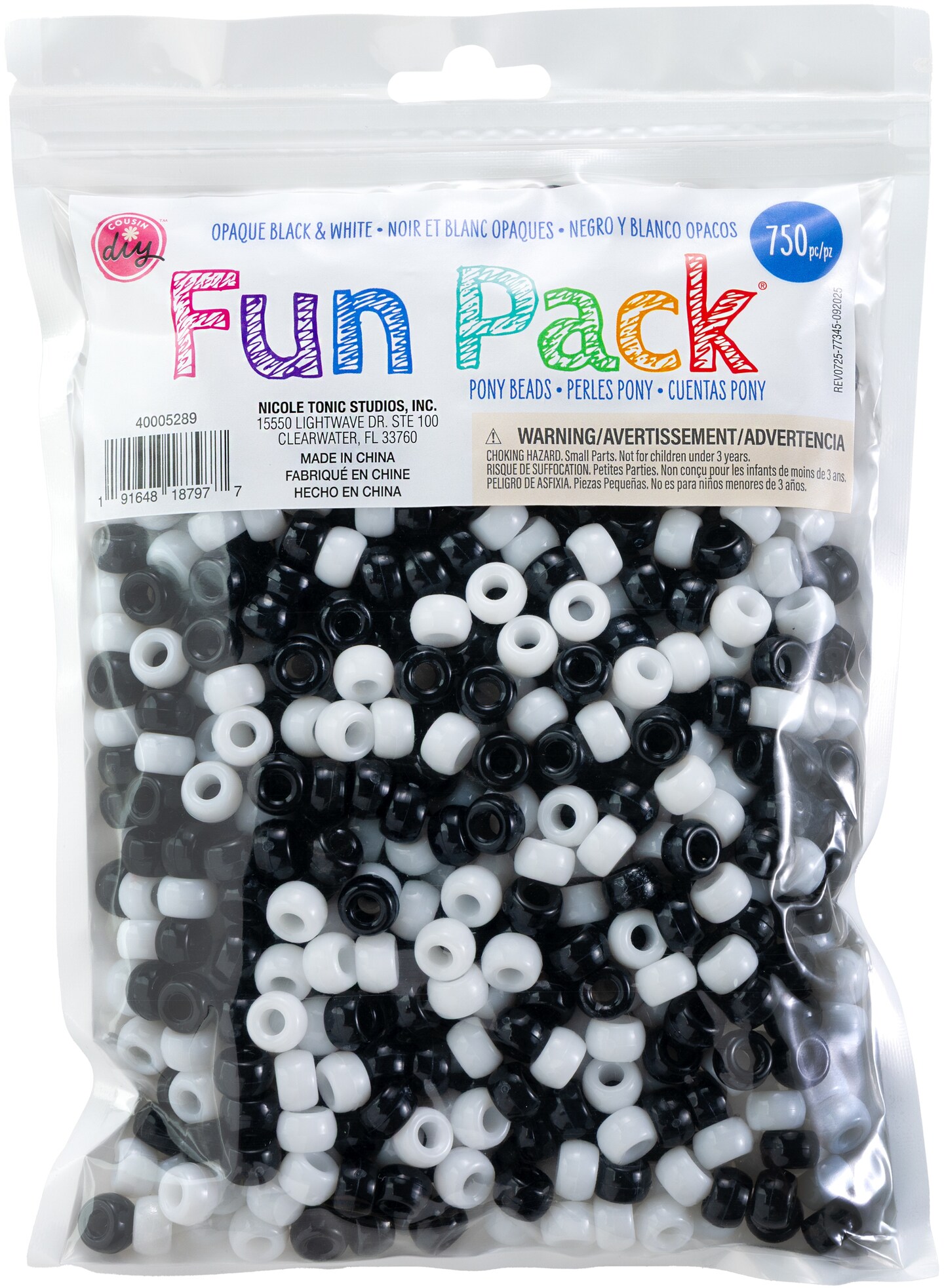 CousinDIY Pony Beads 6mmx9mm 750/Pkg -Black & White