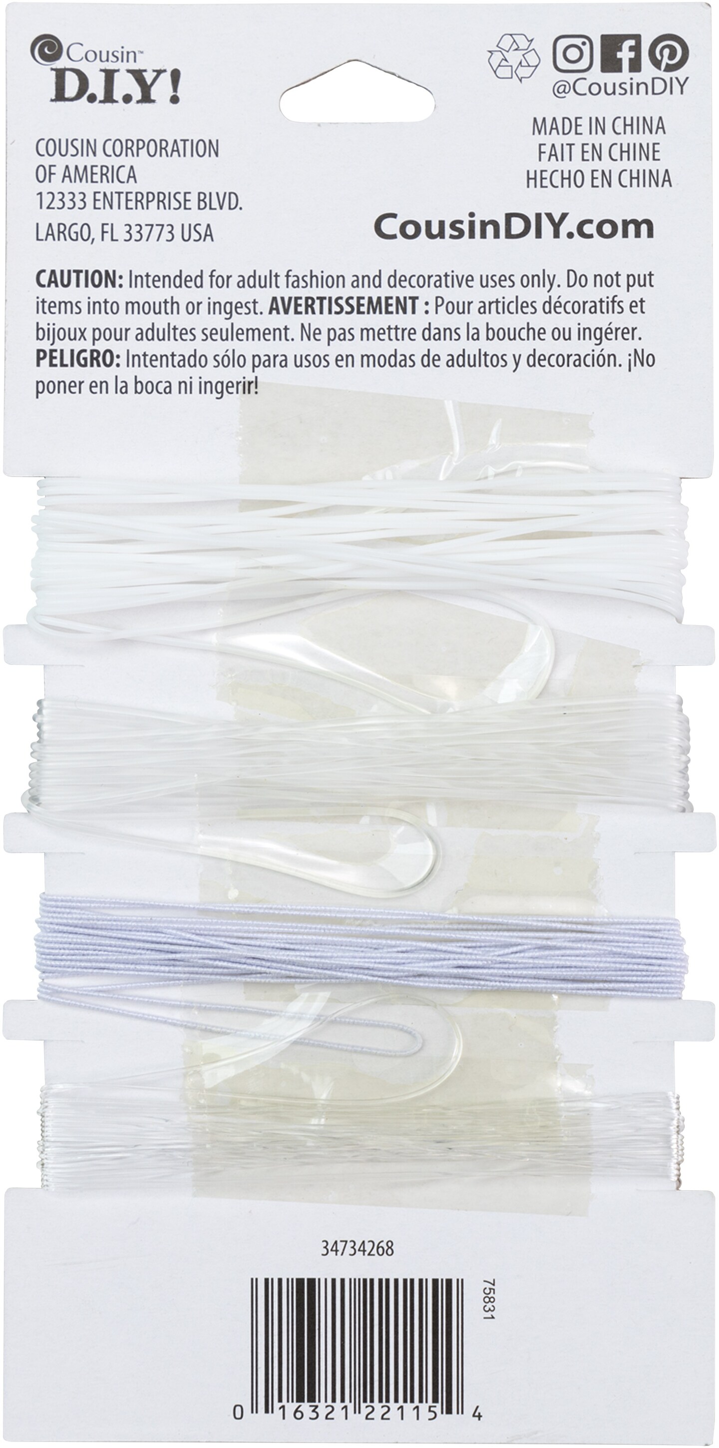 CousinDIY Stretch Cord Set 4/Pkg-Clear & White