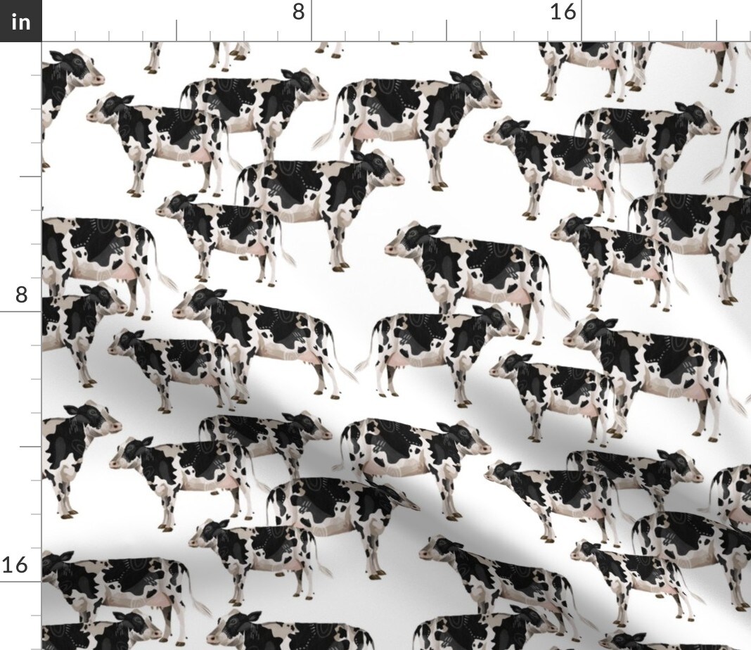 Cows White Background Cow Dairy Milk Black Farm Nursery Decor Custom Printed Fabric by Spoonflower Various Fabrics by the Yard or Fat Quarter