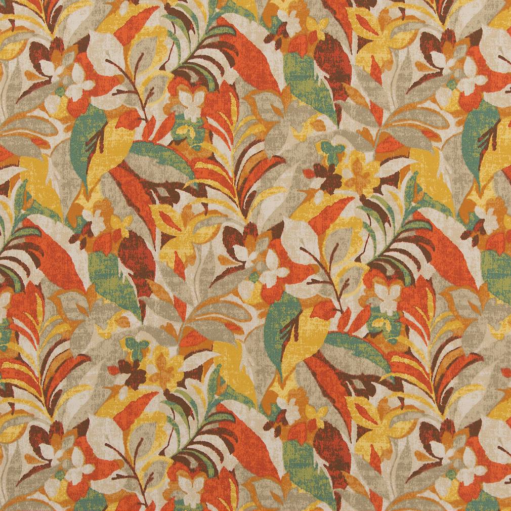 Cozumel - Orange & Rust Floral,Leaves,Tropical & Botanical Upholstery Fabric 54 Inches"