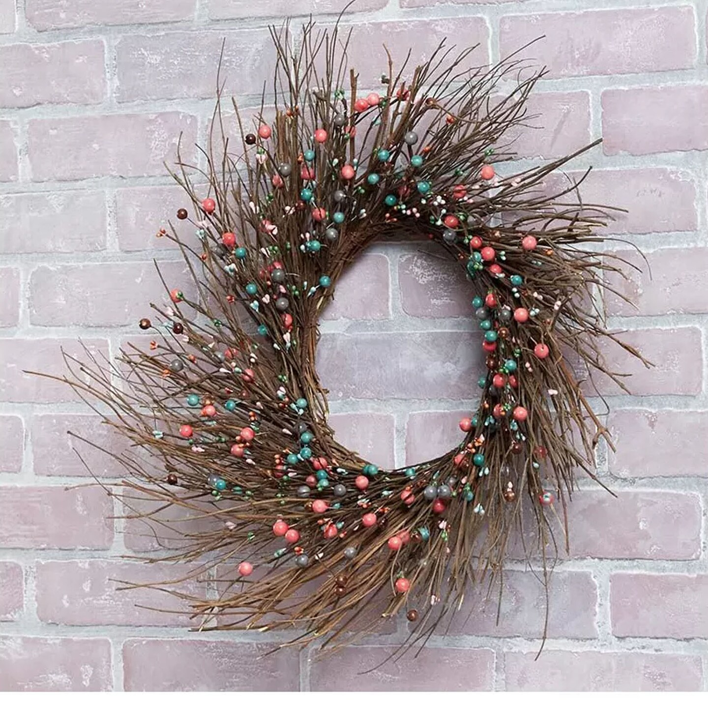 Cozy Country Berry Wreath 19 Inch Rustic Farmhouse Front Door Decor