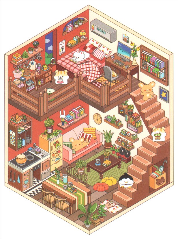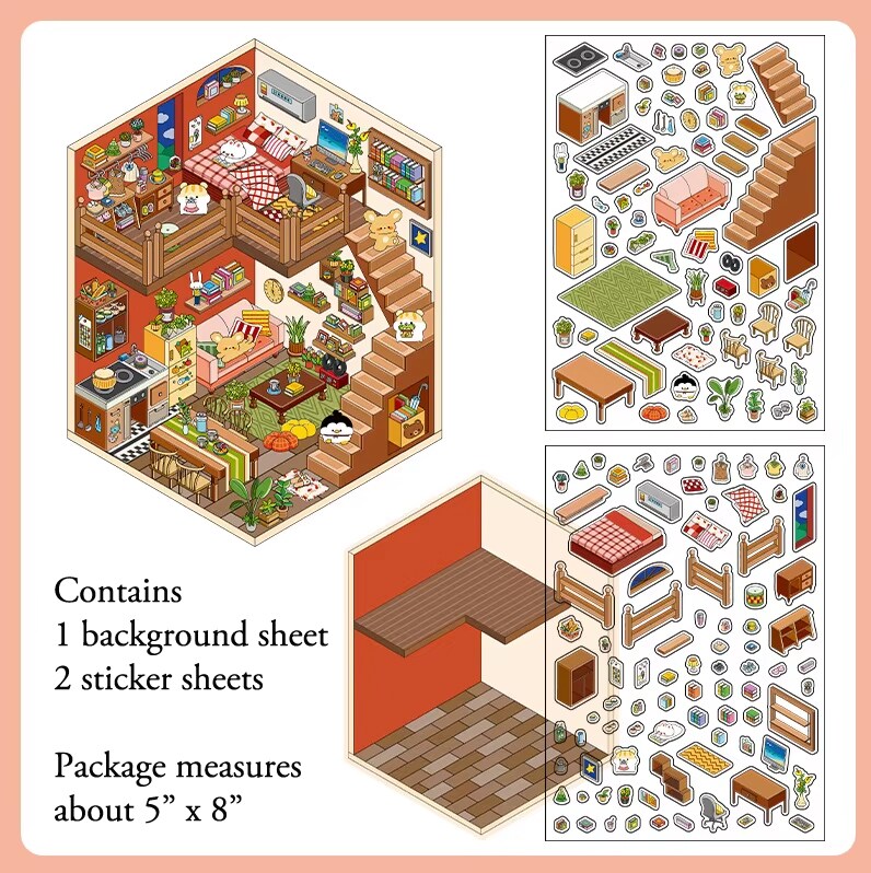 Cozy House Sticker Scene, DIY Isometric Landscape Stickers, Adorabilities