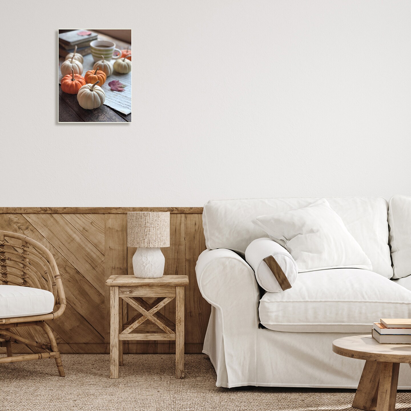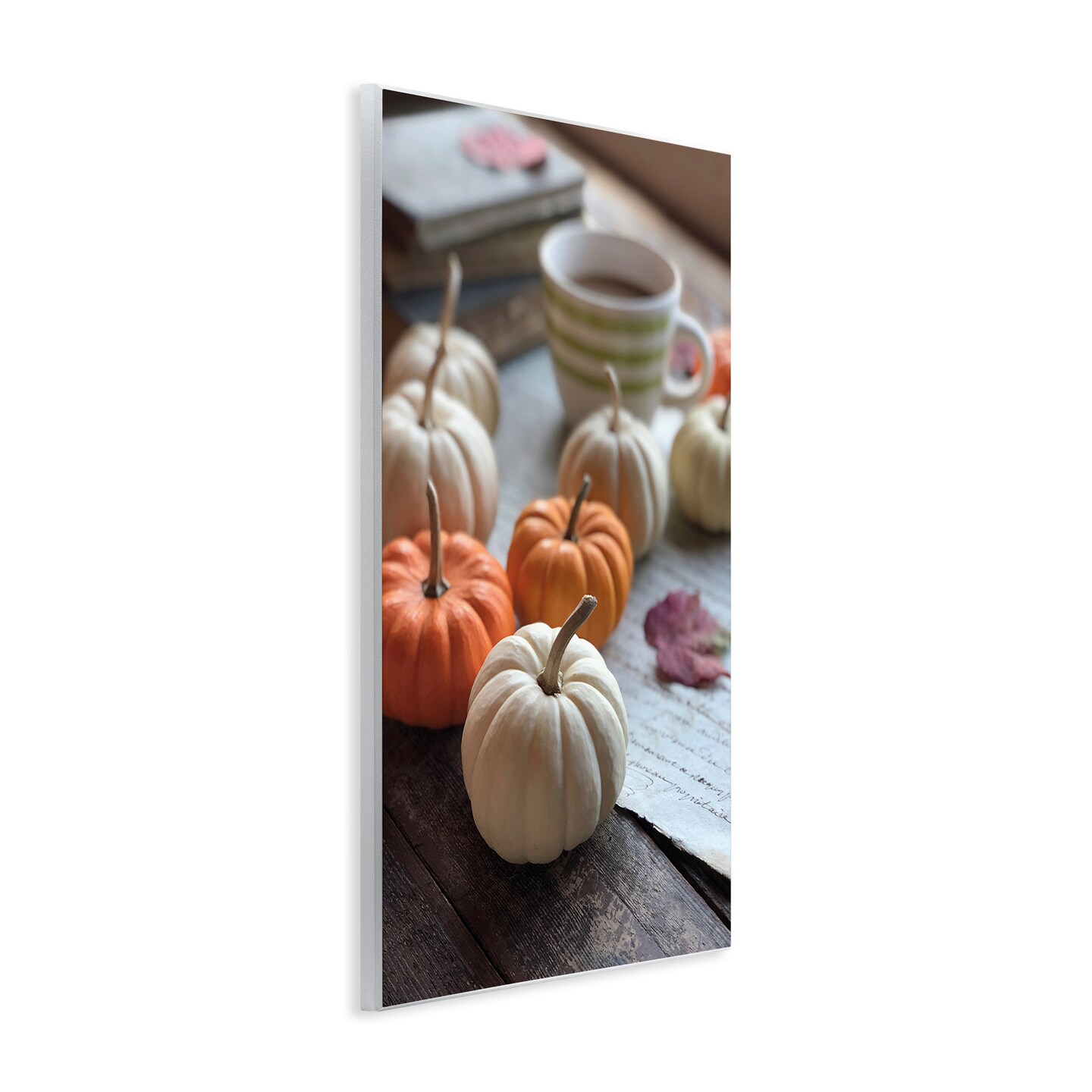 Cozy Pumpkins Scattered Leaves Coffee Mug Photography Wall Plaque Art