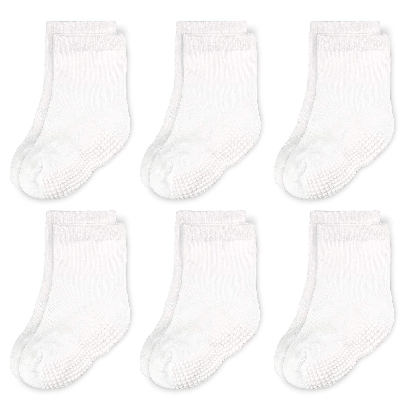 CozyWay Kids Socks With Grippers - Non Slip Crew Grip Socks for Girls and Boys Ages 3 Years and Up - Soft Comfy Cotton - Unisex White - 6 Pack