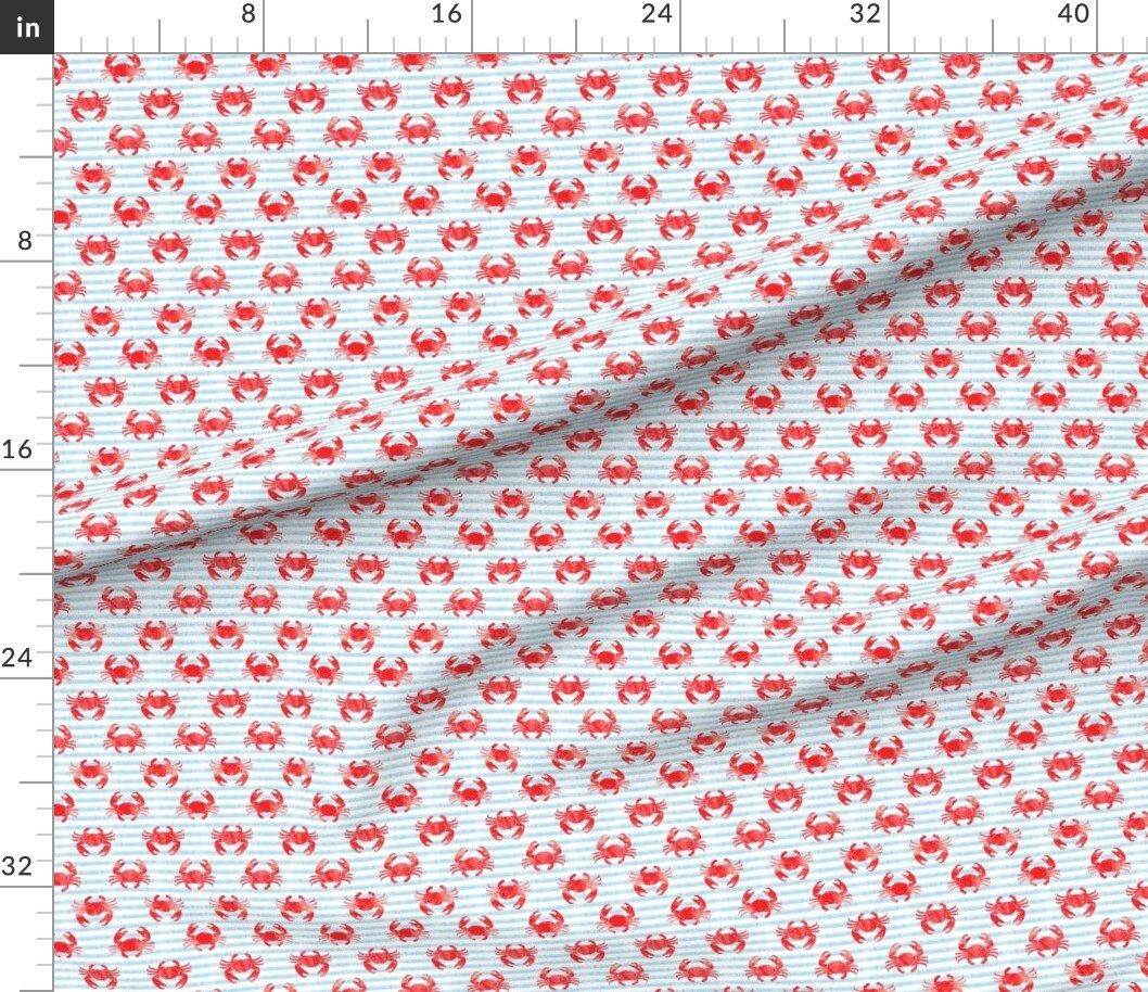 Crabs Red Blue Stripes Nautical Summer Watercolor Crab Custom Printed Fabric by Spoonflower Various Fabrics by the Yard or Fat Quarter