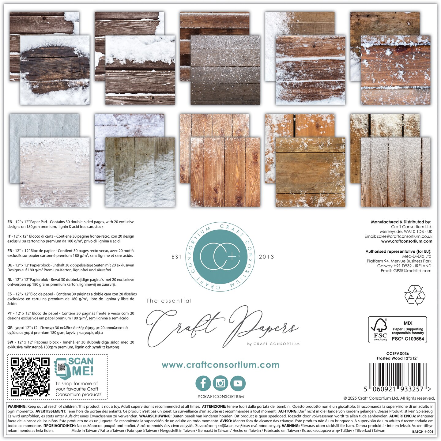 Craft Consortium Double-Sided Paper Pad 12"X12" 30/Pkg-Frosted Wood