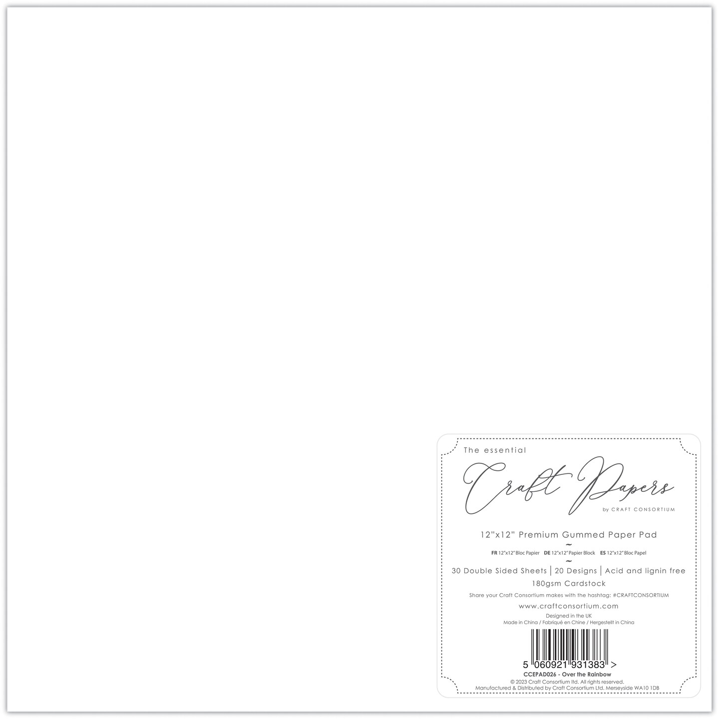 Craft Consortium Double-Sided Paper Pad 12"X12" 30/Pkg-Over The Rainbow, 20 Designs