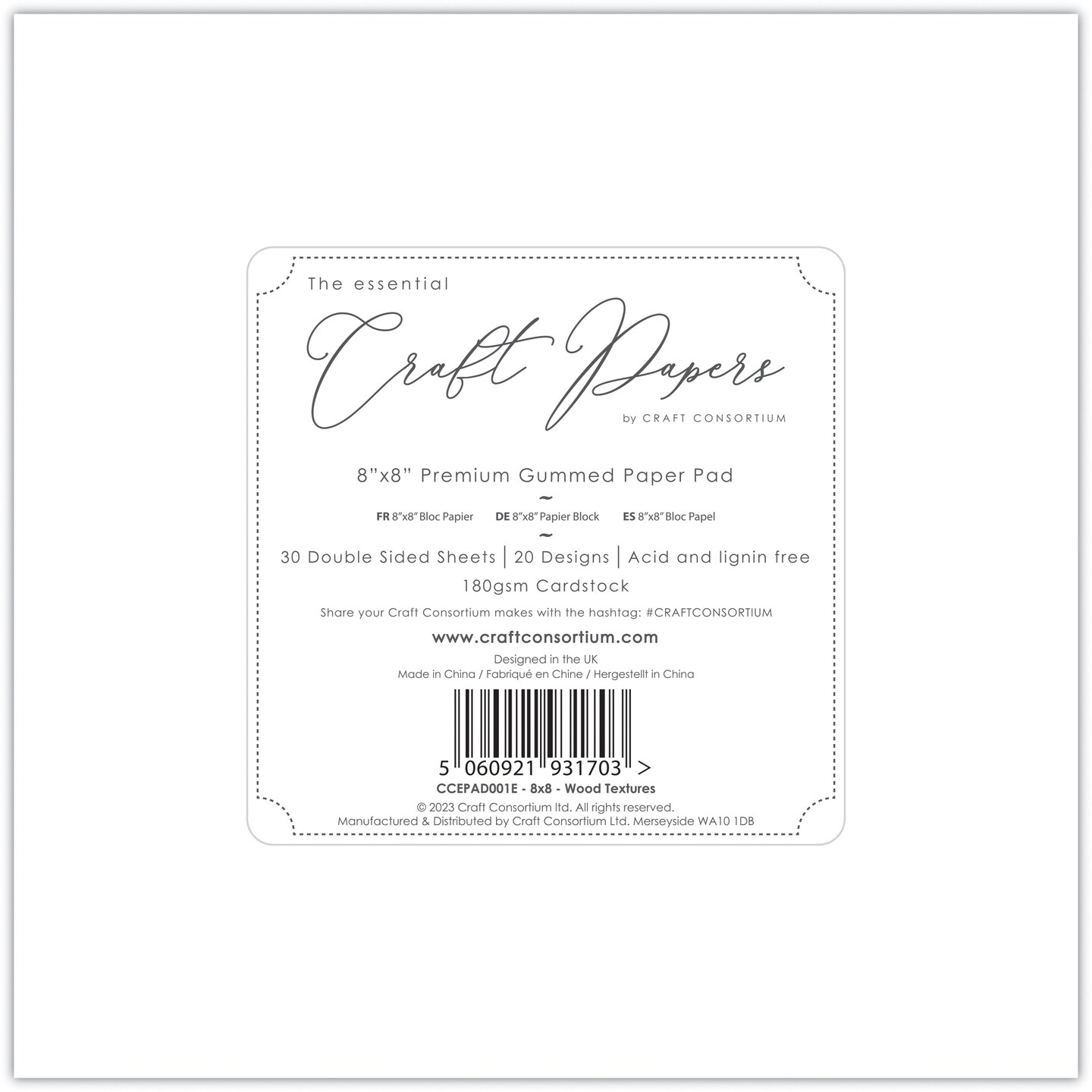 Craft Consortium Double-Sided Paper Pad 8"X8" 30/Pkg-Wood Textures, 20 Designs