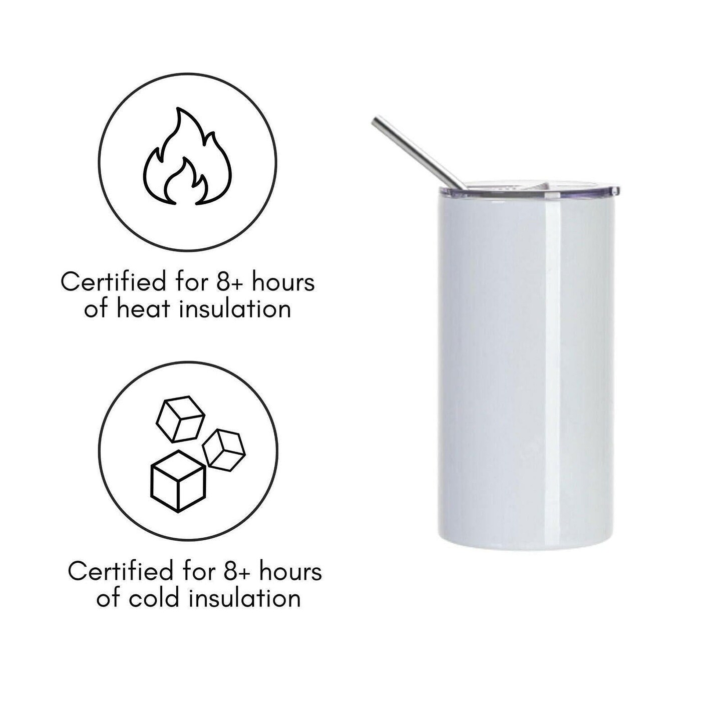 Craft Express 4 Pack 16oz Stainless Steel Skinny Sublimation Tumblers with Lids and Straws