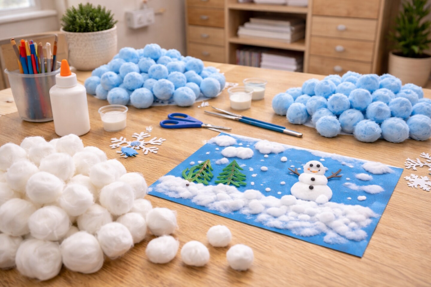 Craft Fluff Triple Size 100 Pack – Soft Craft Fluff Balls for Kids Crafts & Classroom Art Projects (White or Blue)