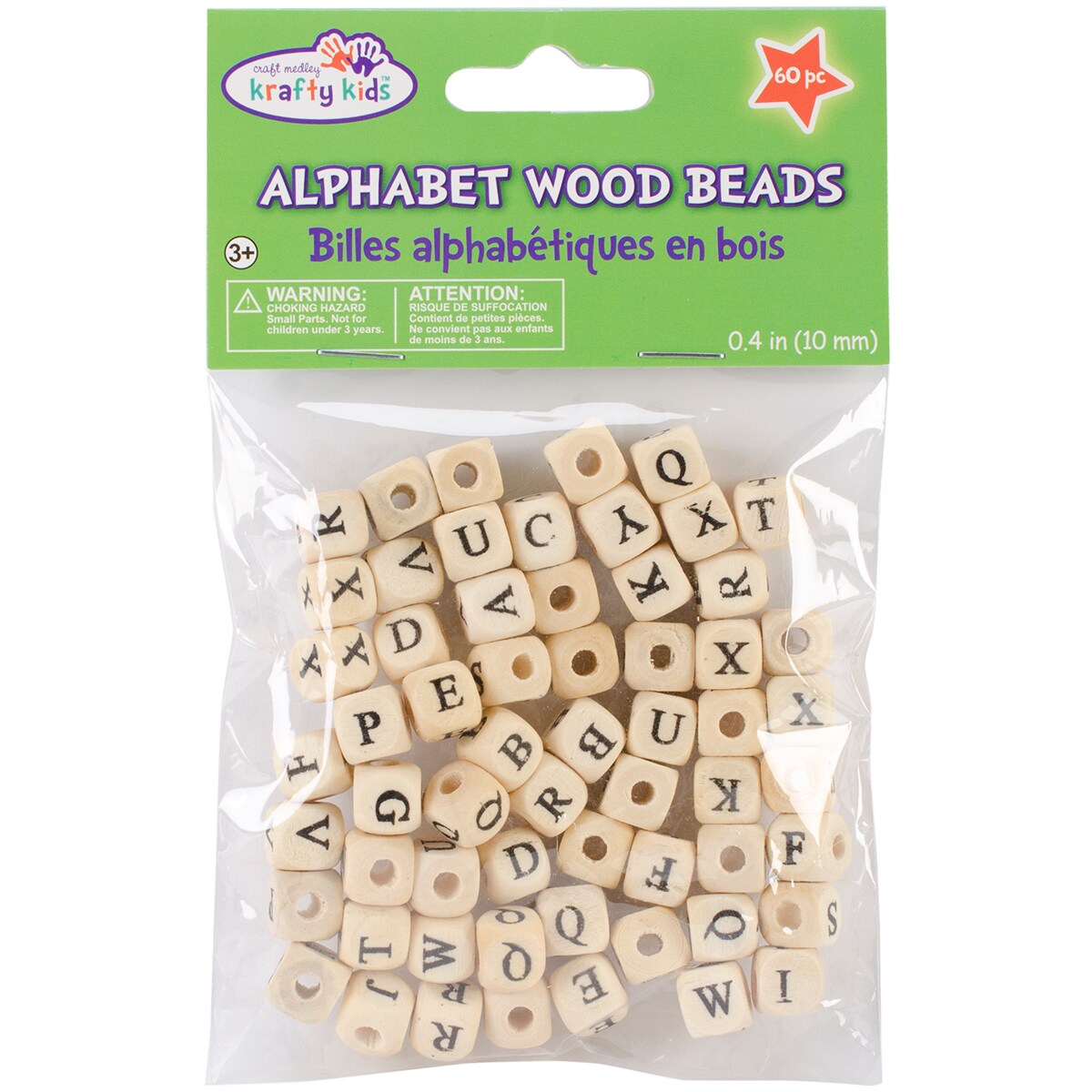 Craft Medley Wood Alphabet Beads 10mm 60/Pkg-Natural