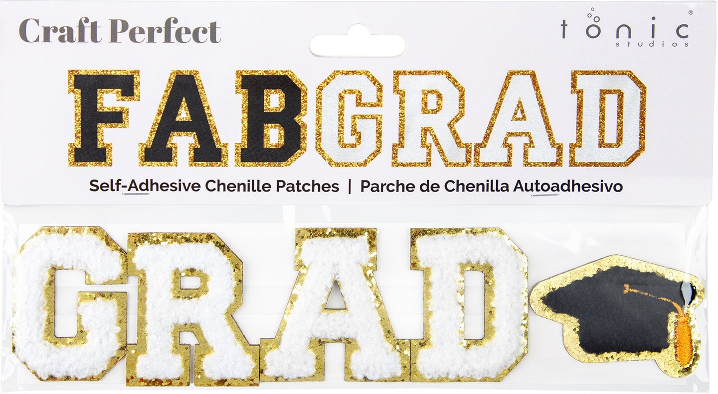 Craft Perfect Chenille Self Adhesive Grad Patch -White