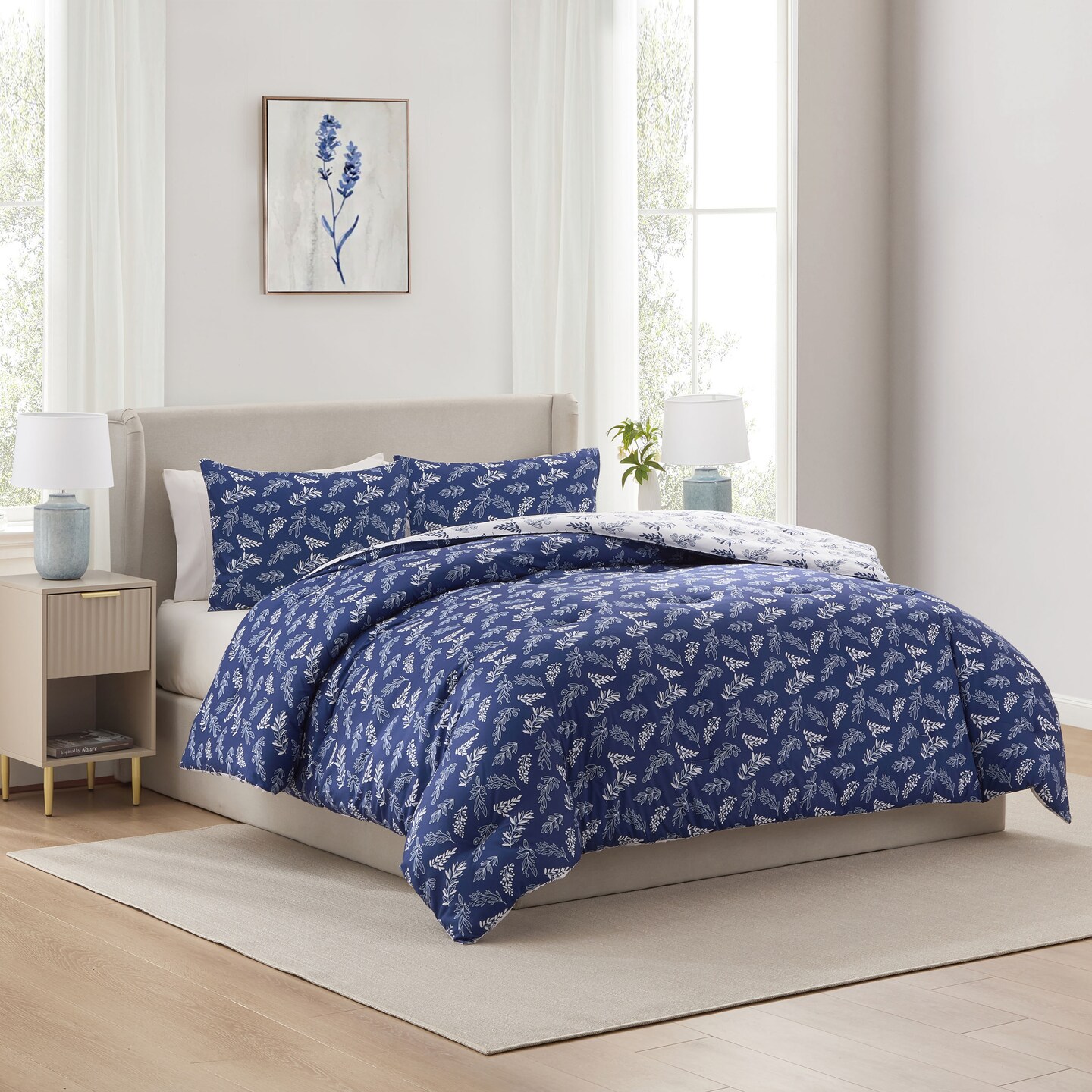 CraftBud 3PC Reversible Botanical Printed Comforter Bedding Set
