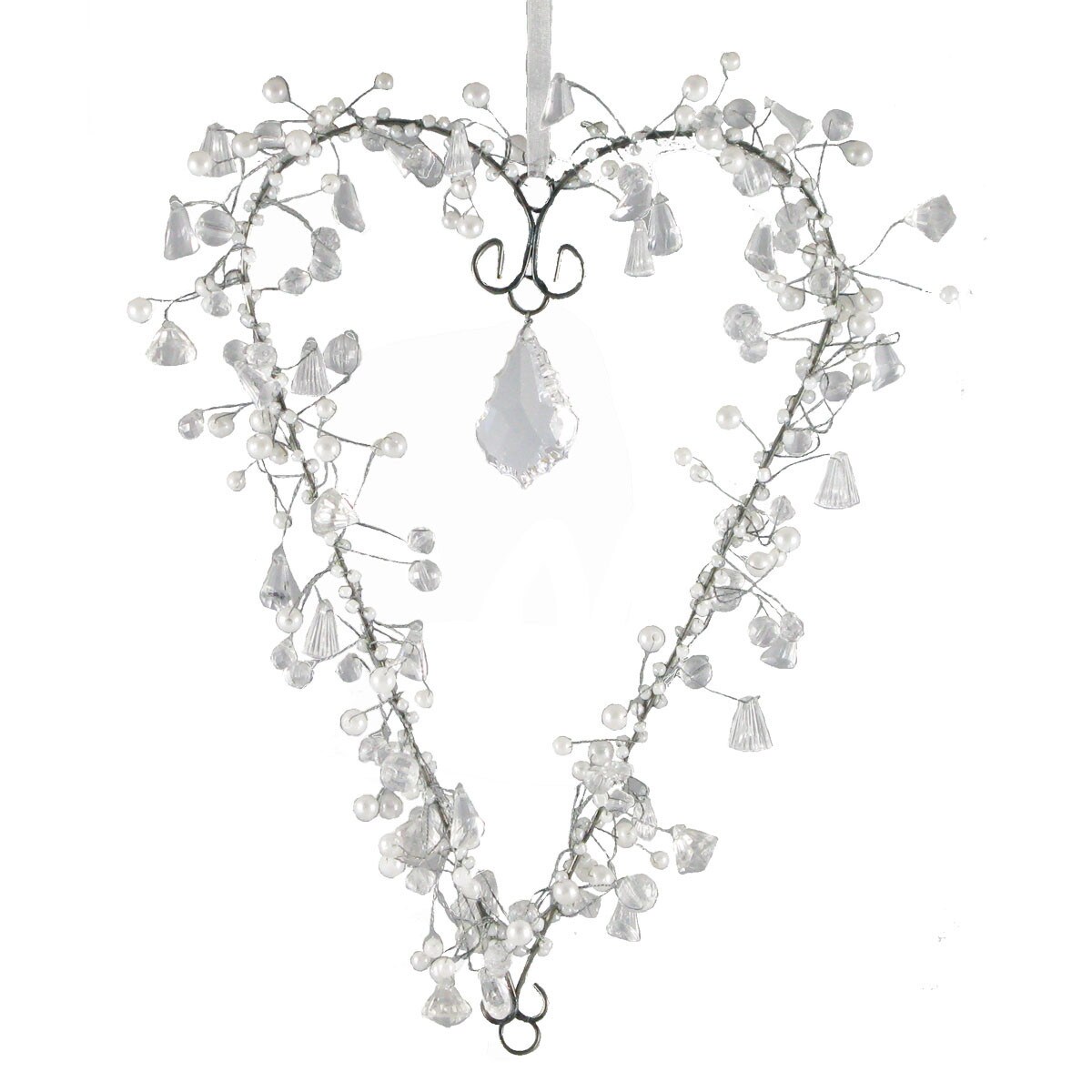 Crafted Creations Set of 2 Clear and White Beaded Heart Hanging Crystal 11"