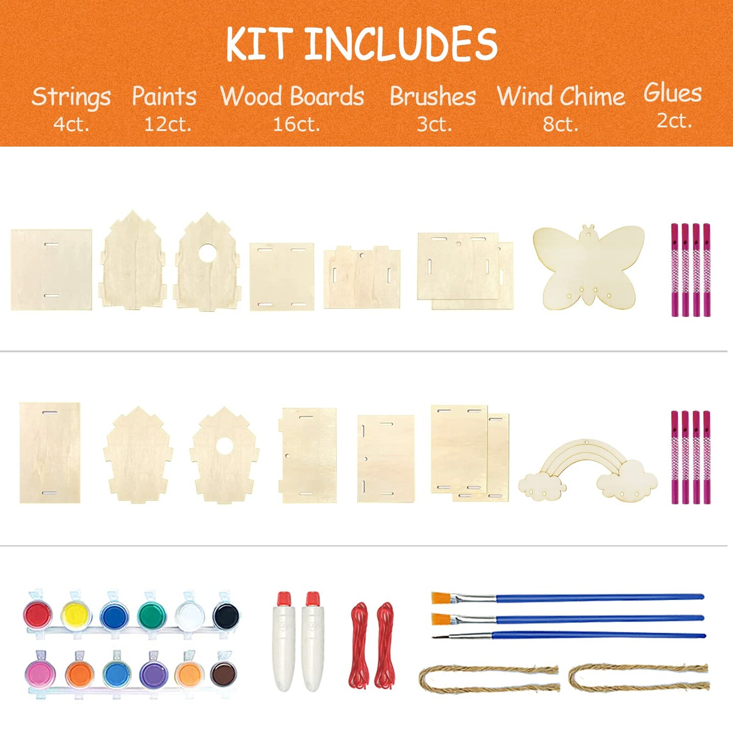 Crafts for Kids Ages 4-8 - 4 Pack DIY Bird House Wind Chime Kit - Build and Paint Birdhouses Wooden Arts Kits Easter Basket Stuffers Gifts for Girls Kids Boys Toddlers Ages 3-5 4-6 6-8 8-12