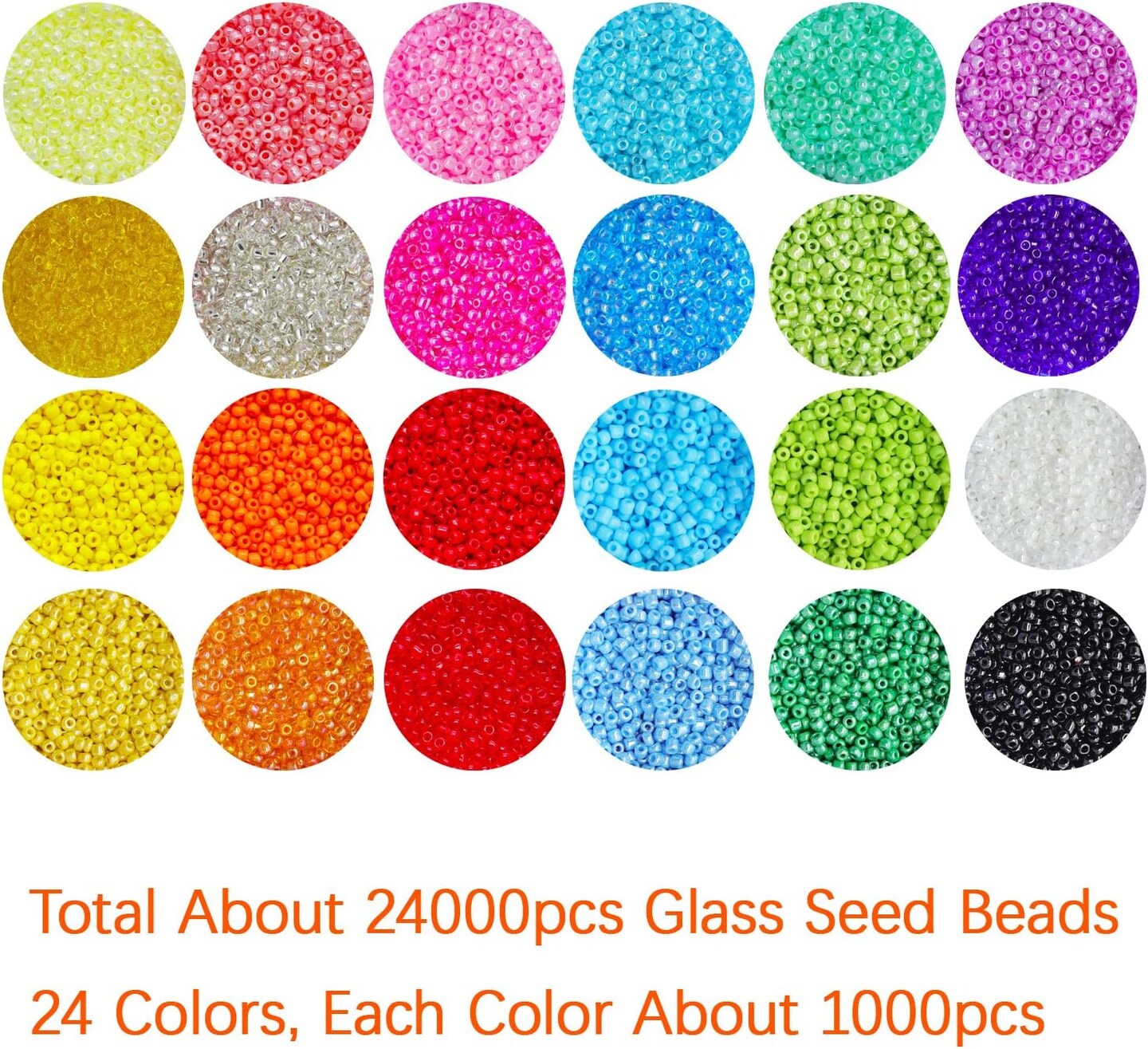 Crafts Glass Seed Beads 2mm Tiny 24000pcs (24 Assorted Multicolor Set, Total About 24000pcs)