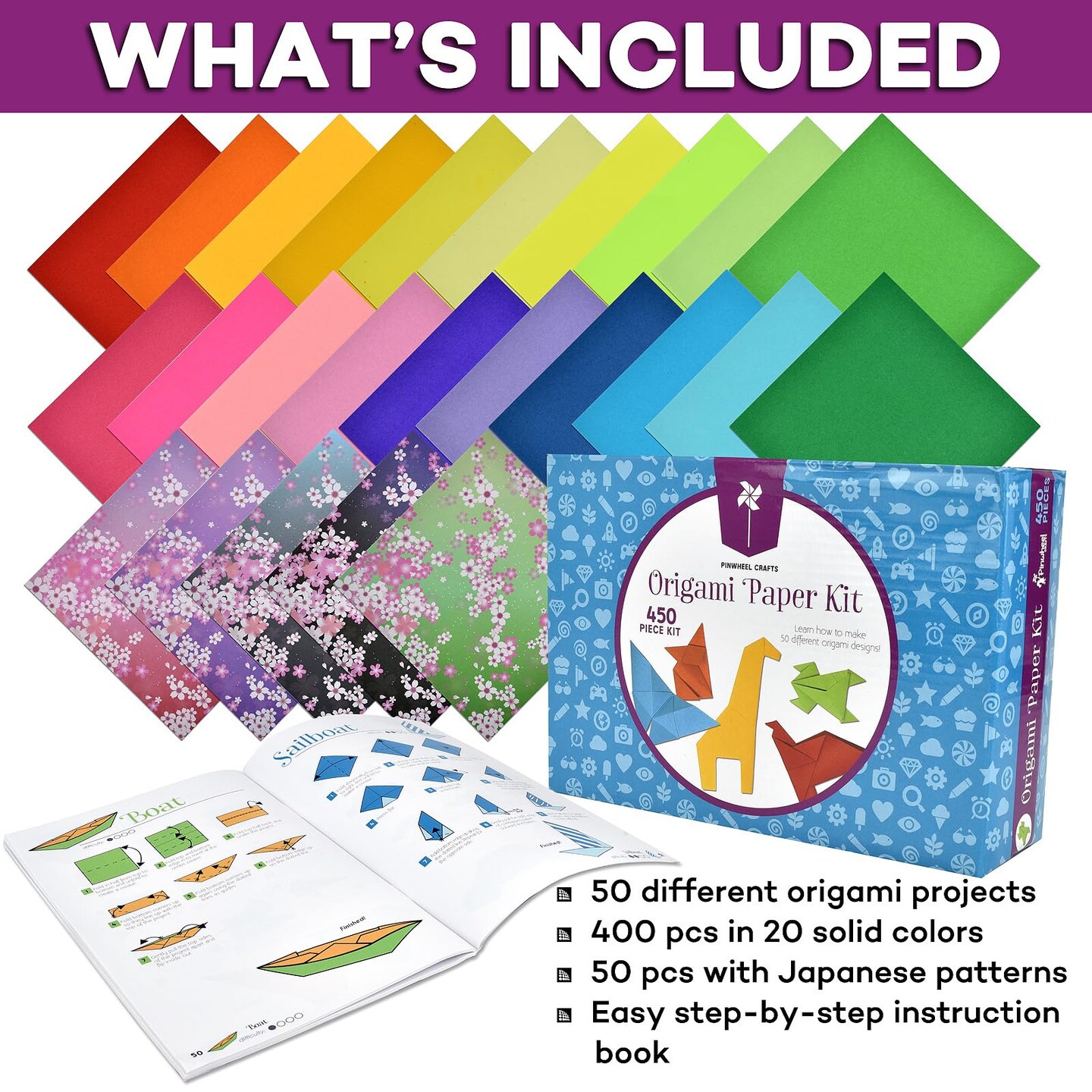 Crafts Origami Kit for Kids Ages 5-8,8-12 | 450 Sheets Origami Paper Kit w/ 50 Projects, 400 Solid Color Paper for Crafts, 50 Japanese Patterns & Guide Book | Christmas Gift for Boys & Girls