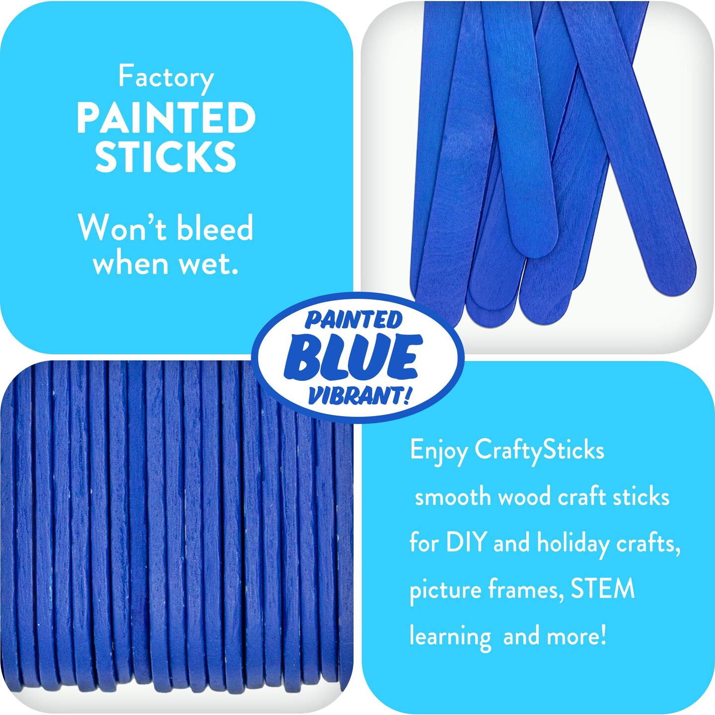 CraftySticks 100 Pack 6 Inch Blue Painted Wood Craft Sticks, Jumbo Popsicle Sticks for Crafts, Teacher STEM Basics
