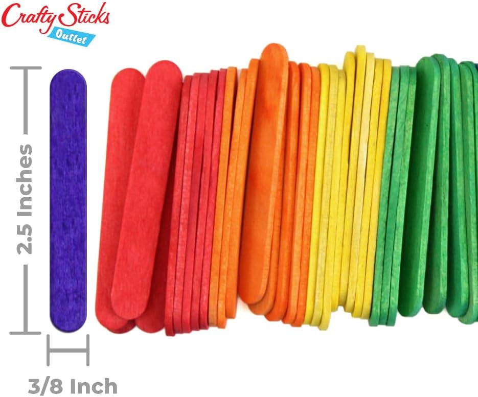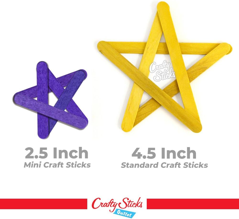 CraftySticks 2.5 Inch Mini Craft Popsicle Sticks, Natural, Multi-Color