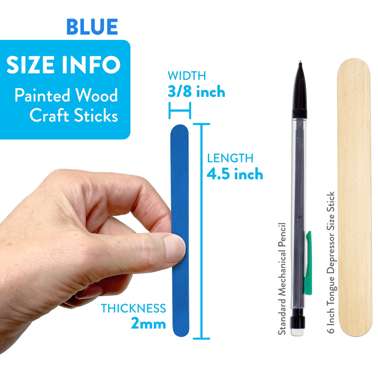 CraftySticks Colored Wood Craft Sticks 4.5 Inch, Red Orange Yellow Green Blue Purple White Black Pink Brown Popsicle Sticks