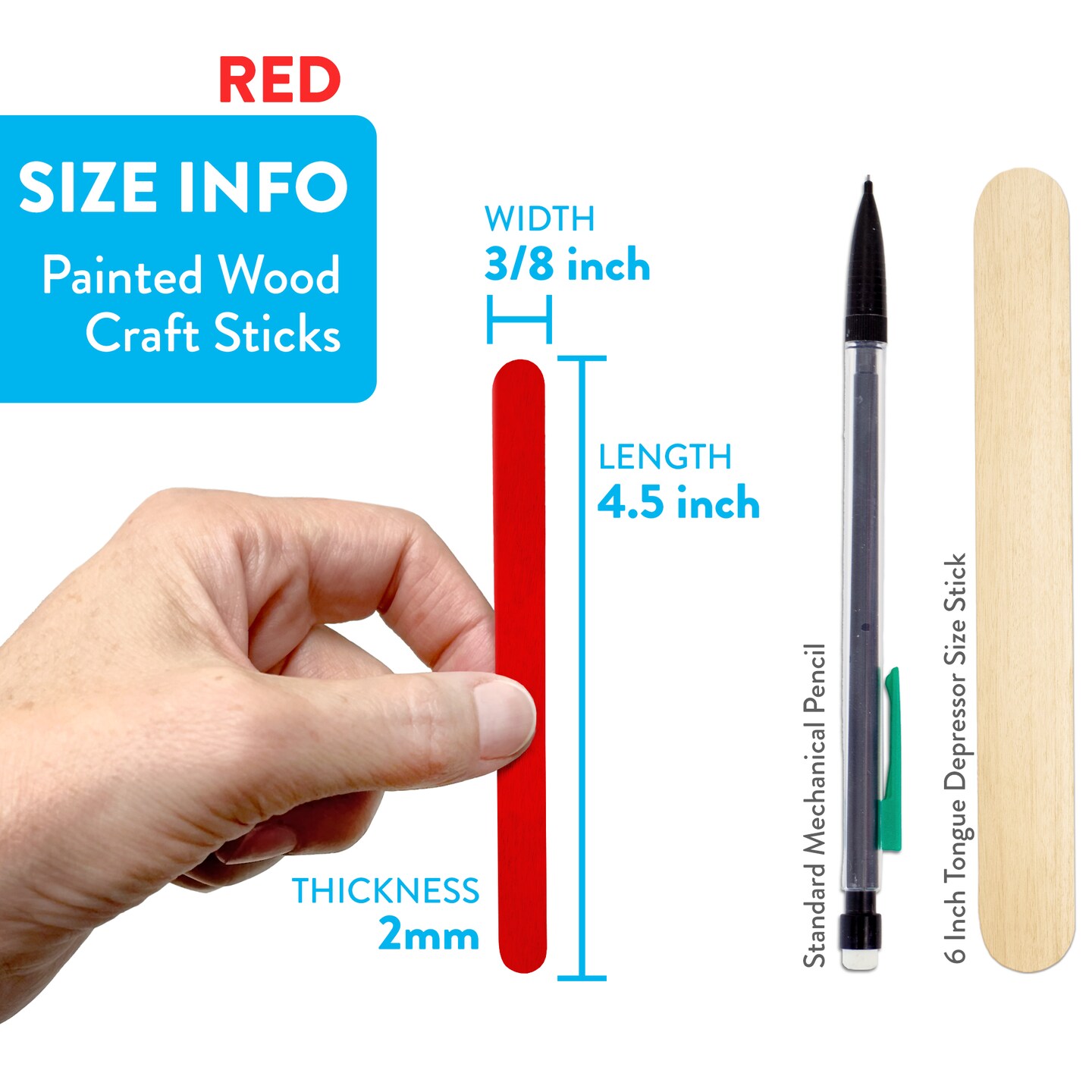 CraftySticks Colored Wood Craft Sticks 4.5 Inch, Red Orange Yellow Green Blue Purple White Black Pink Brown Popsicle Sticks