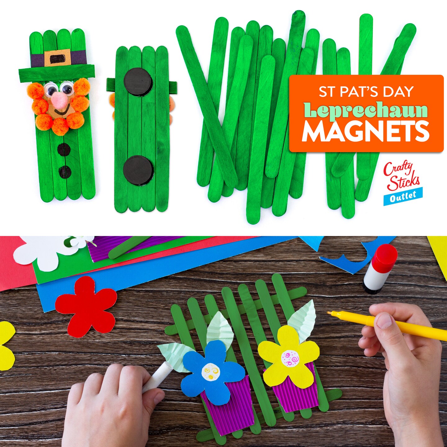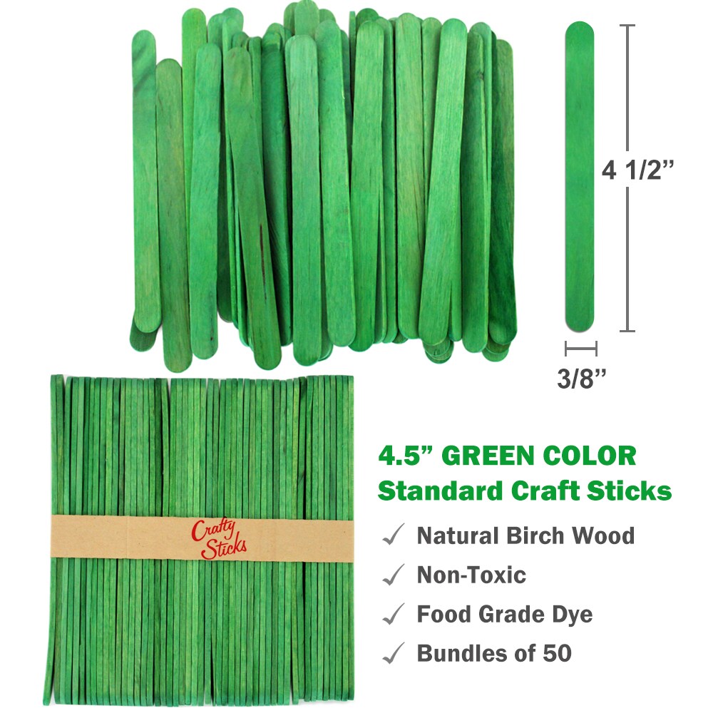 CraftySticks Colored Wood Craft Sticks 4.5 Inch, Red Orange Yellow Green Blue Purple White Black Pink Brown Popsicle Sticks