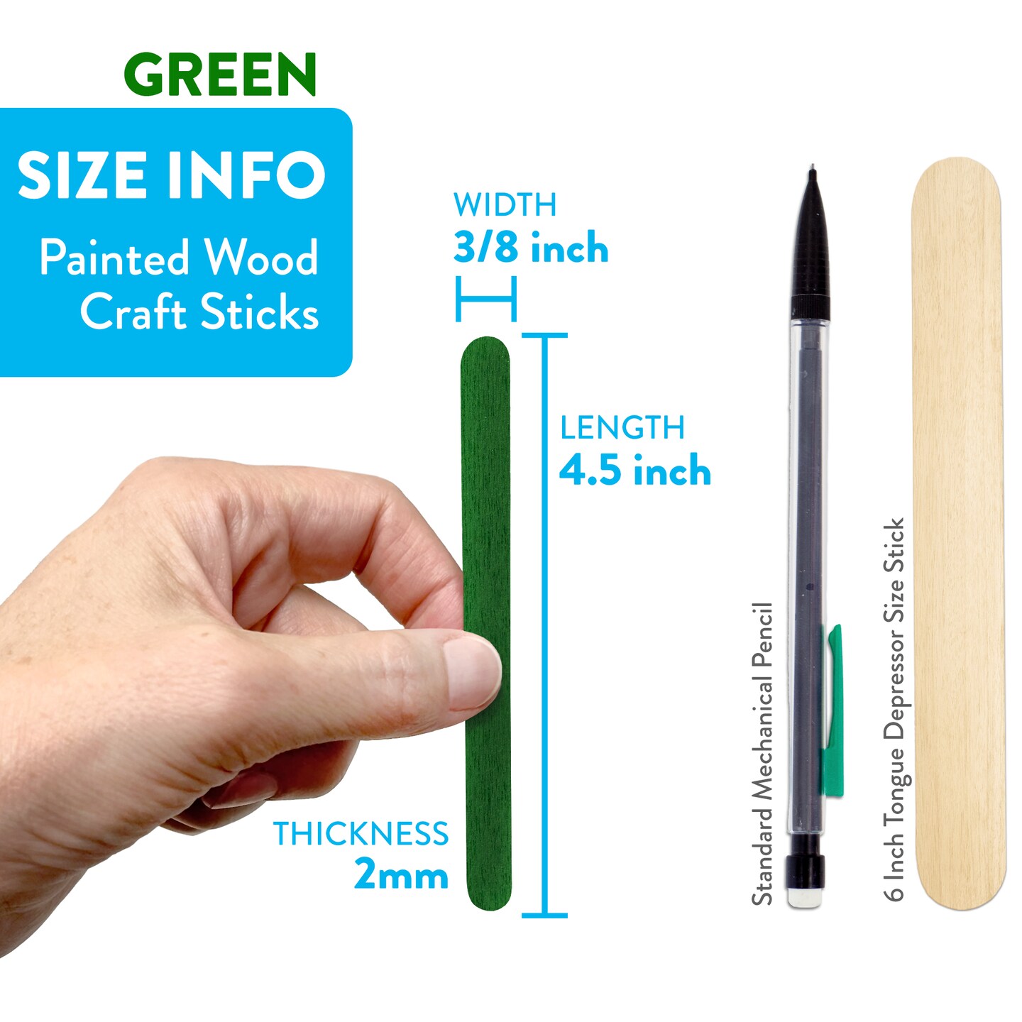 CraftySticks Colored Wood Craft Sticks 4.5 Inch, Red Orange Yellow Green Blue Purple White Black Pink Brown Popsicle Sticks