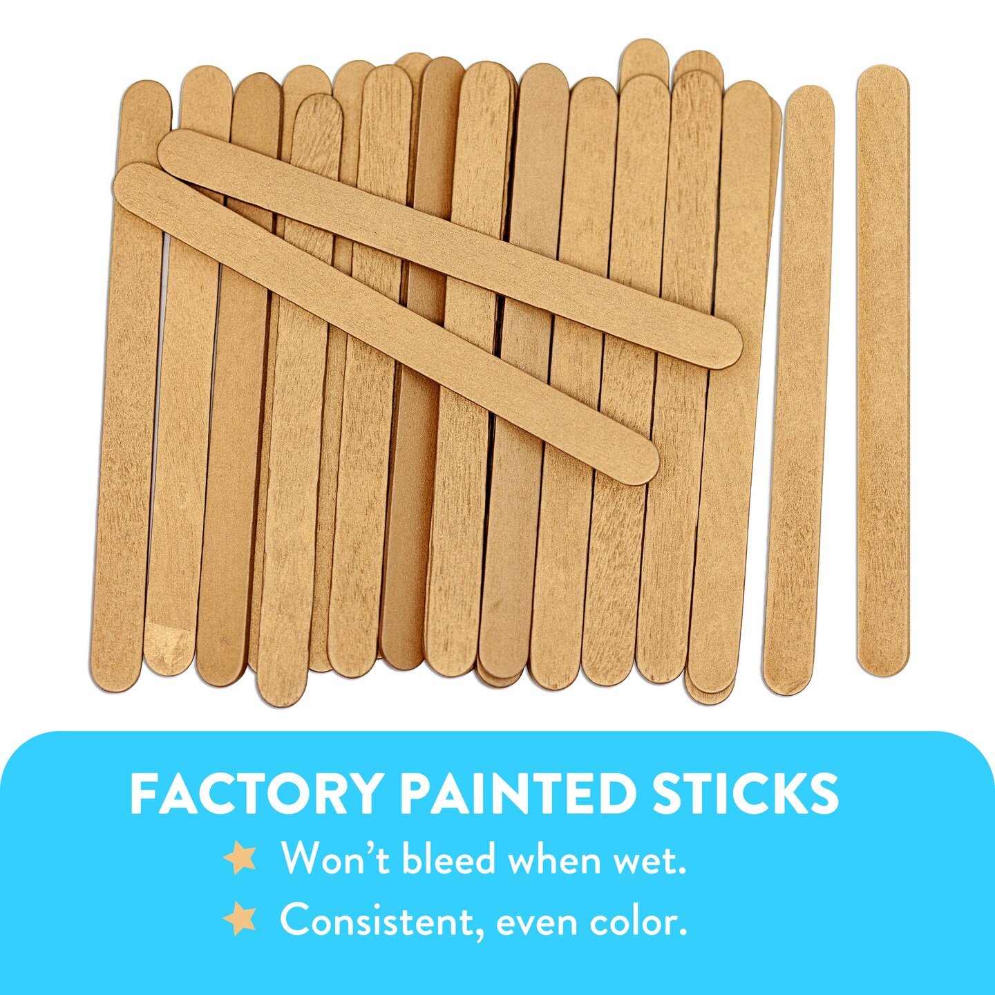 CraftySticks Colored Wood Craft Sticks 4.5 Inch, Red Orange Yellow Green Blue Purple White Black Pink Brown Popsicle Sticks