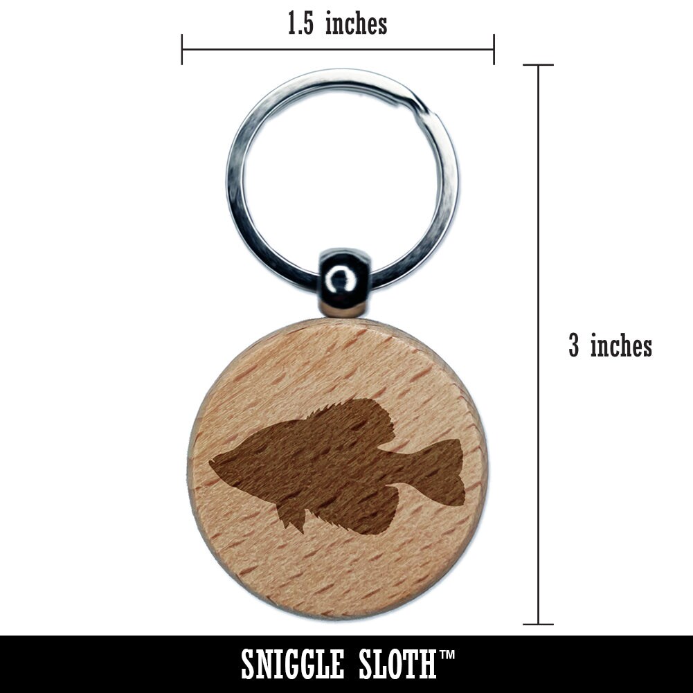 Crappie Fish Silhouette Engraved Wood Round Keychain Tag Charm