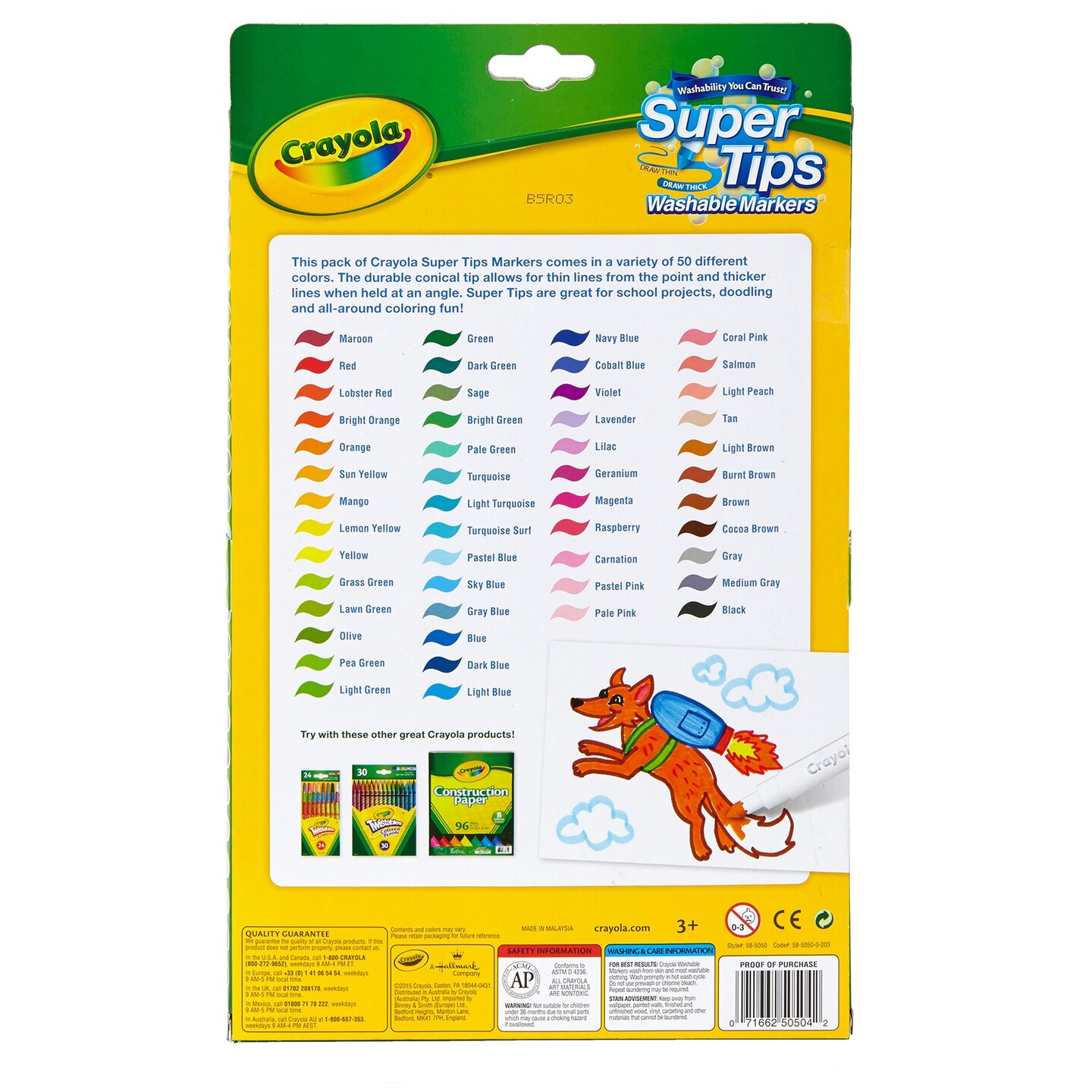 Crayola Super Tips Washable Markers 50/Pkg-Assorted Colors