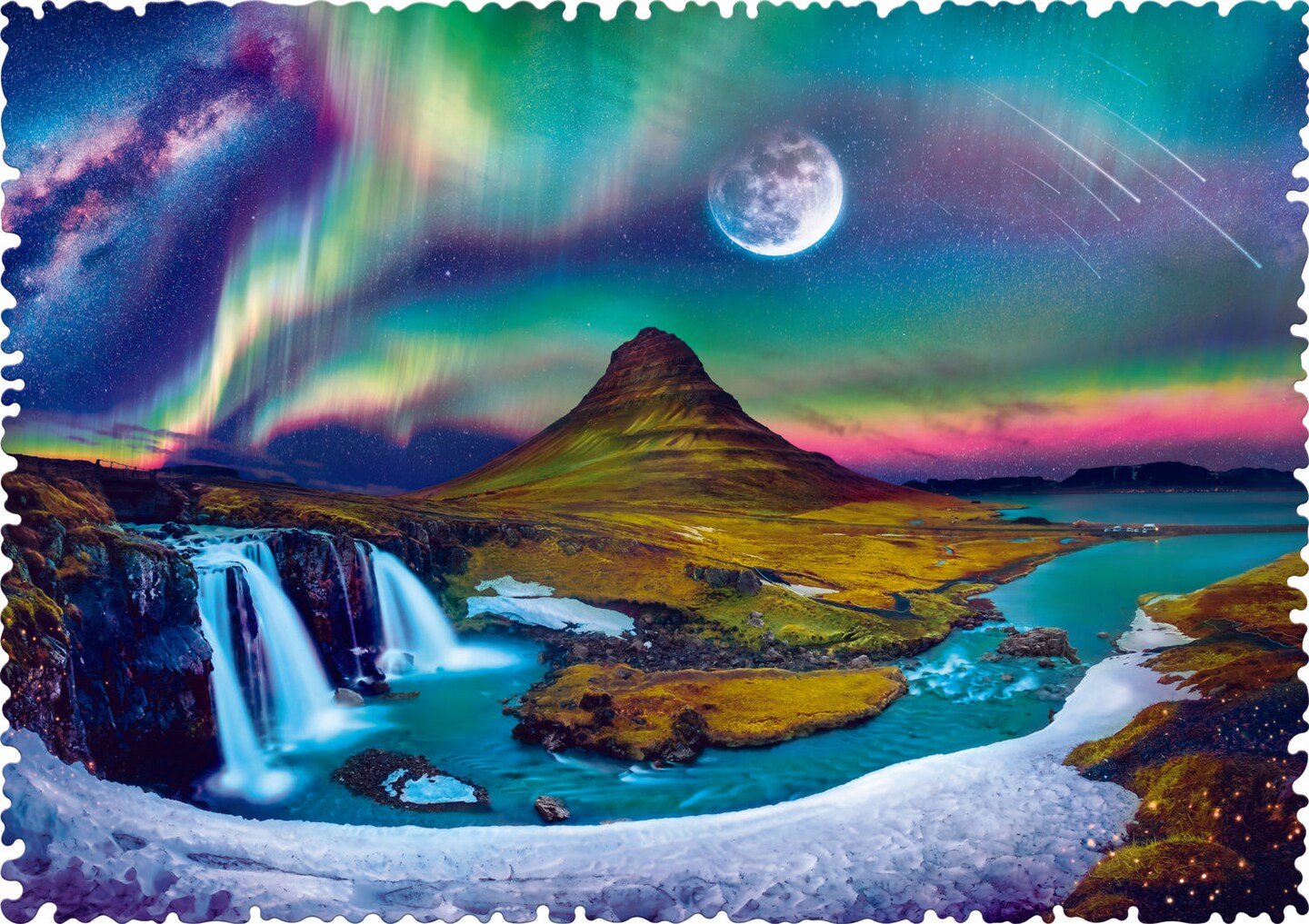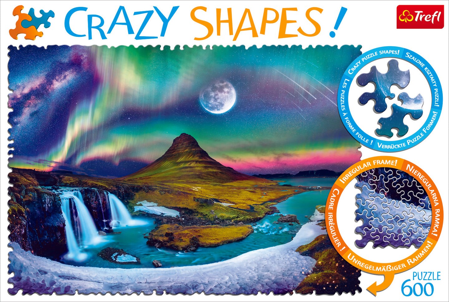 Crazy Shape 600 Piece Jigsaw Puzzles, Aurora Over Iceland, Aurora Borealis, Northern Lights, Waterfalls, Adult Puzzles, Trefl 11114