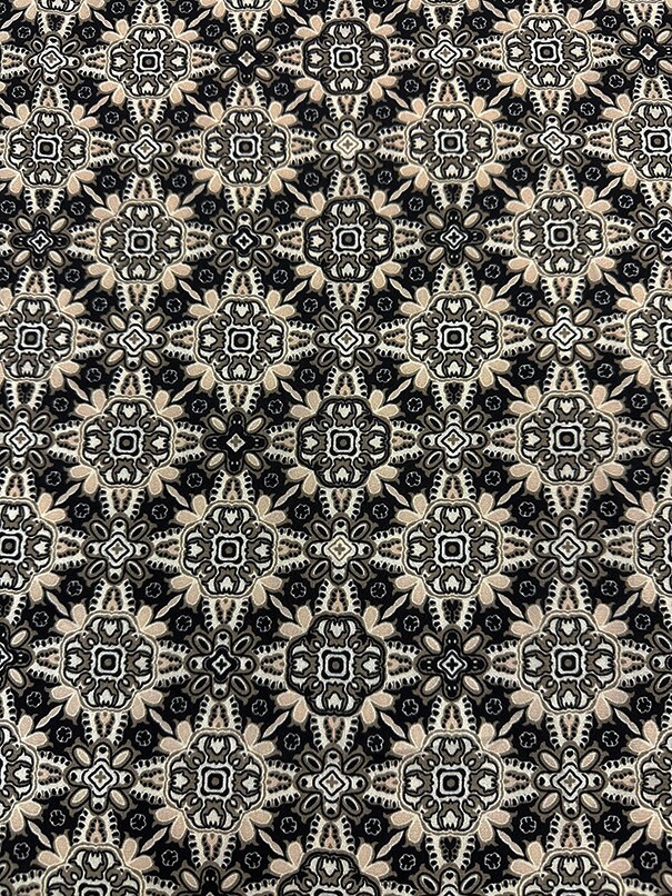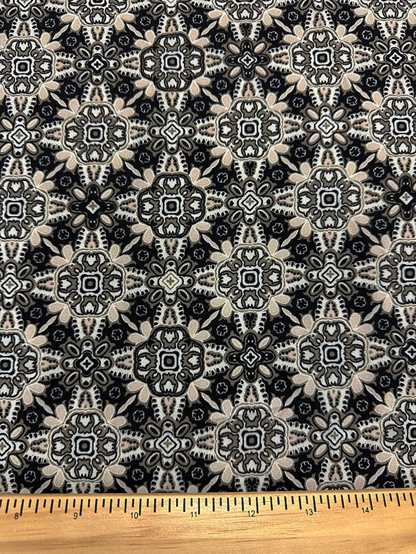 Cream and Black Multi Print Poly Georgette Fabric By the Yard