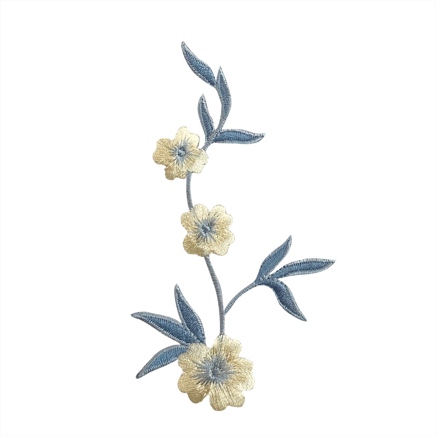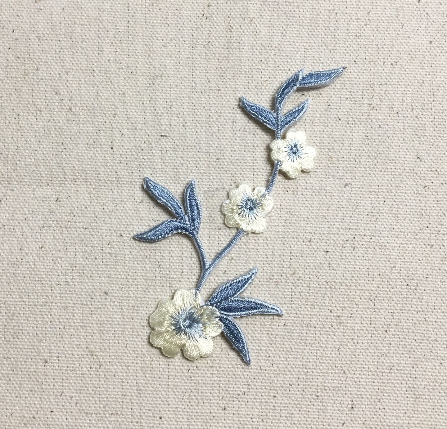 Cream and Blue Flower, Embroidered, Iron on Patch
