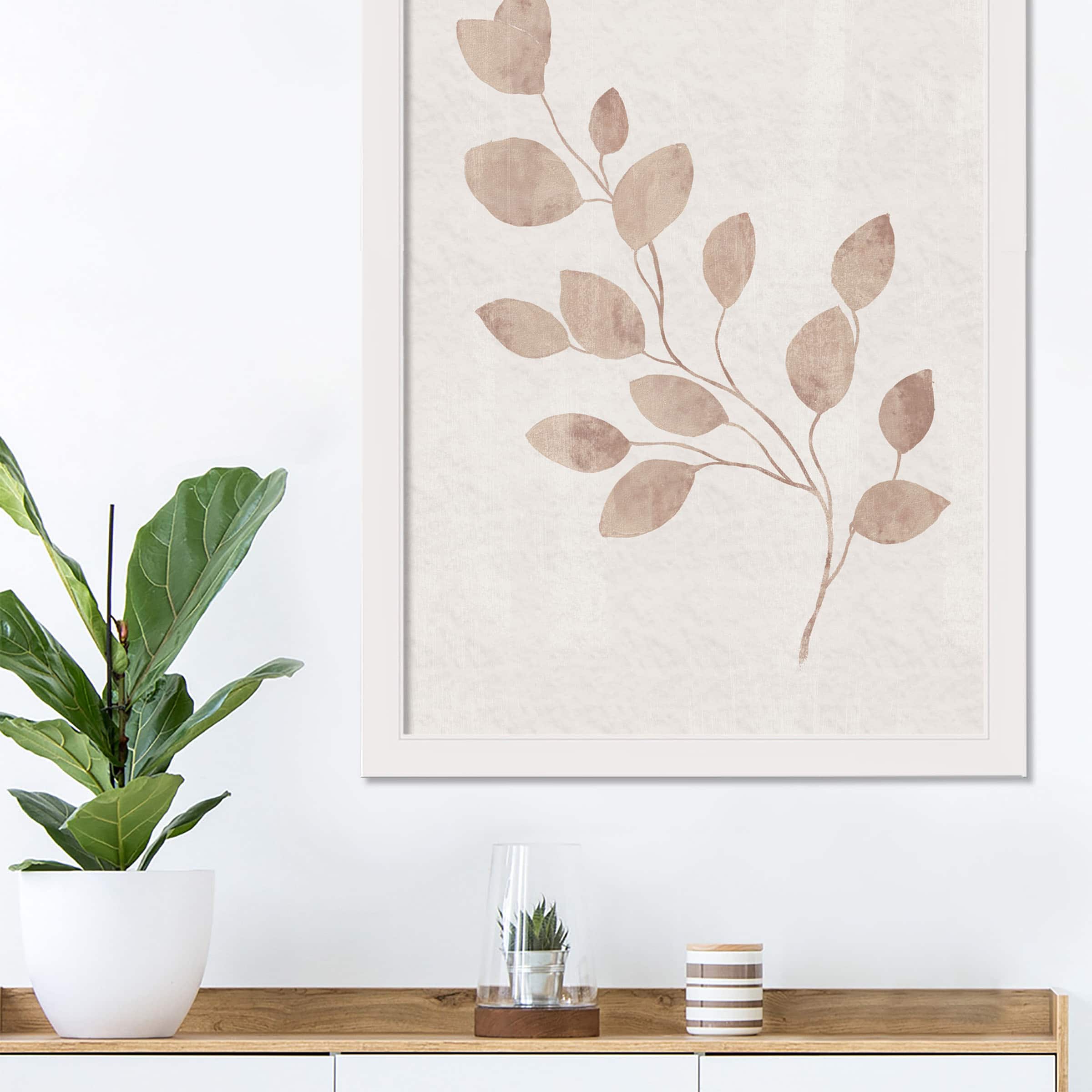 Cream Leaves 20" x 30" White Framed Print Under Plexiglass