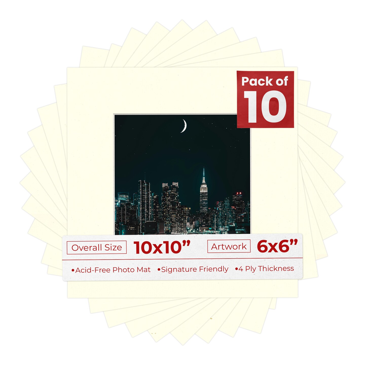 Cream Linen Mat Board for 10x10 Frames - Fits 6x6 Photos