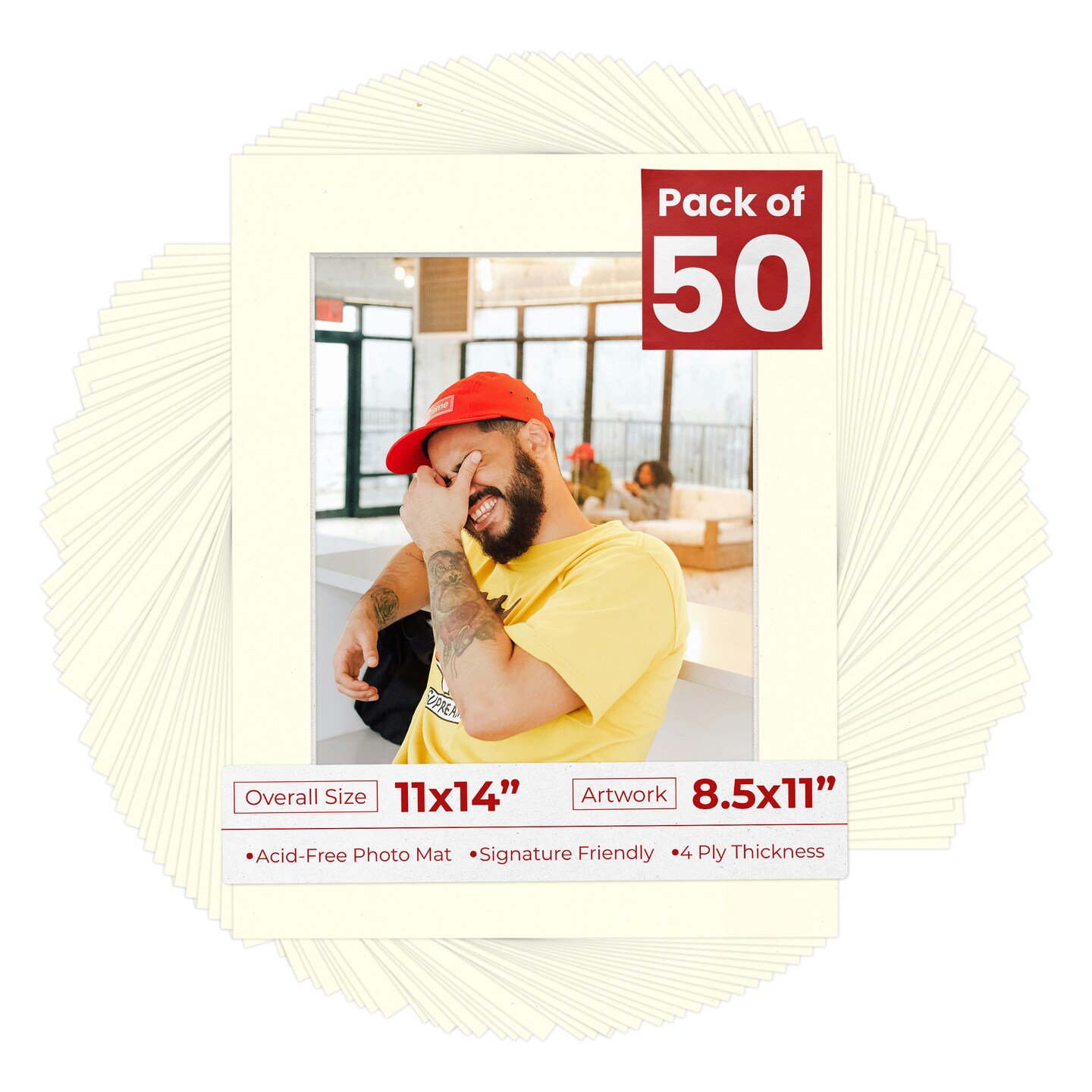 Cream Linen Mat Board for 11x14 Frames - Fits 8.5x11 Photos