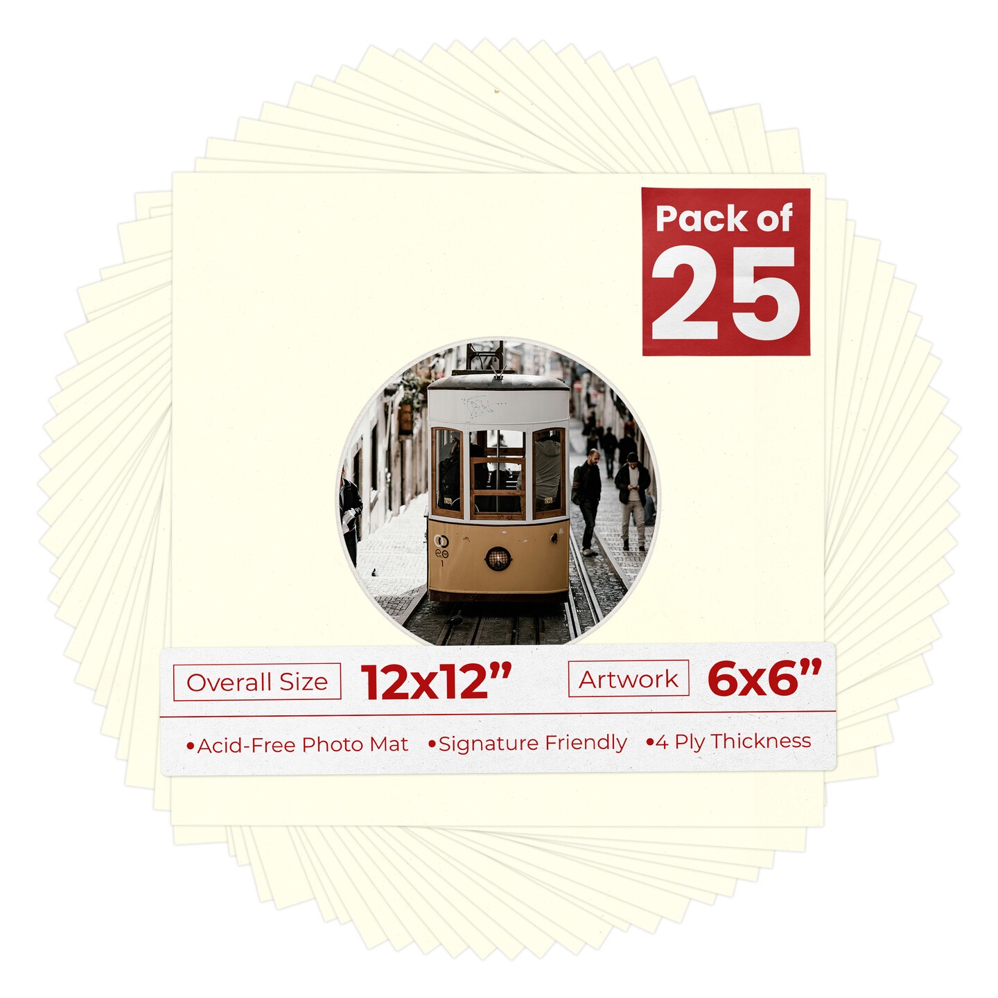 Cream Linen Mat Board for 12x12 Frames - Circle Opening for 6x6 Photos