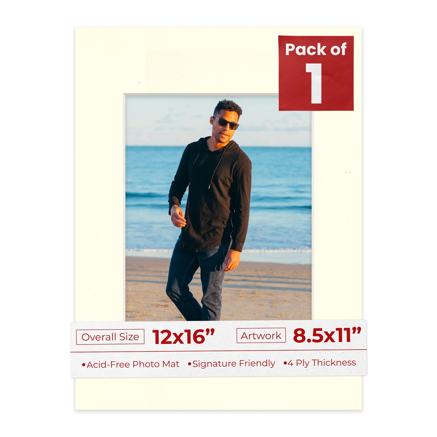 Cream Linen Mat Board for 12x16 Frames - Fits 8.5x11 Photos