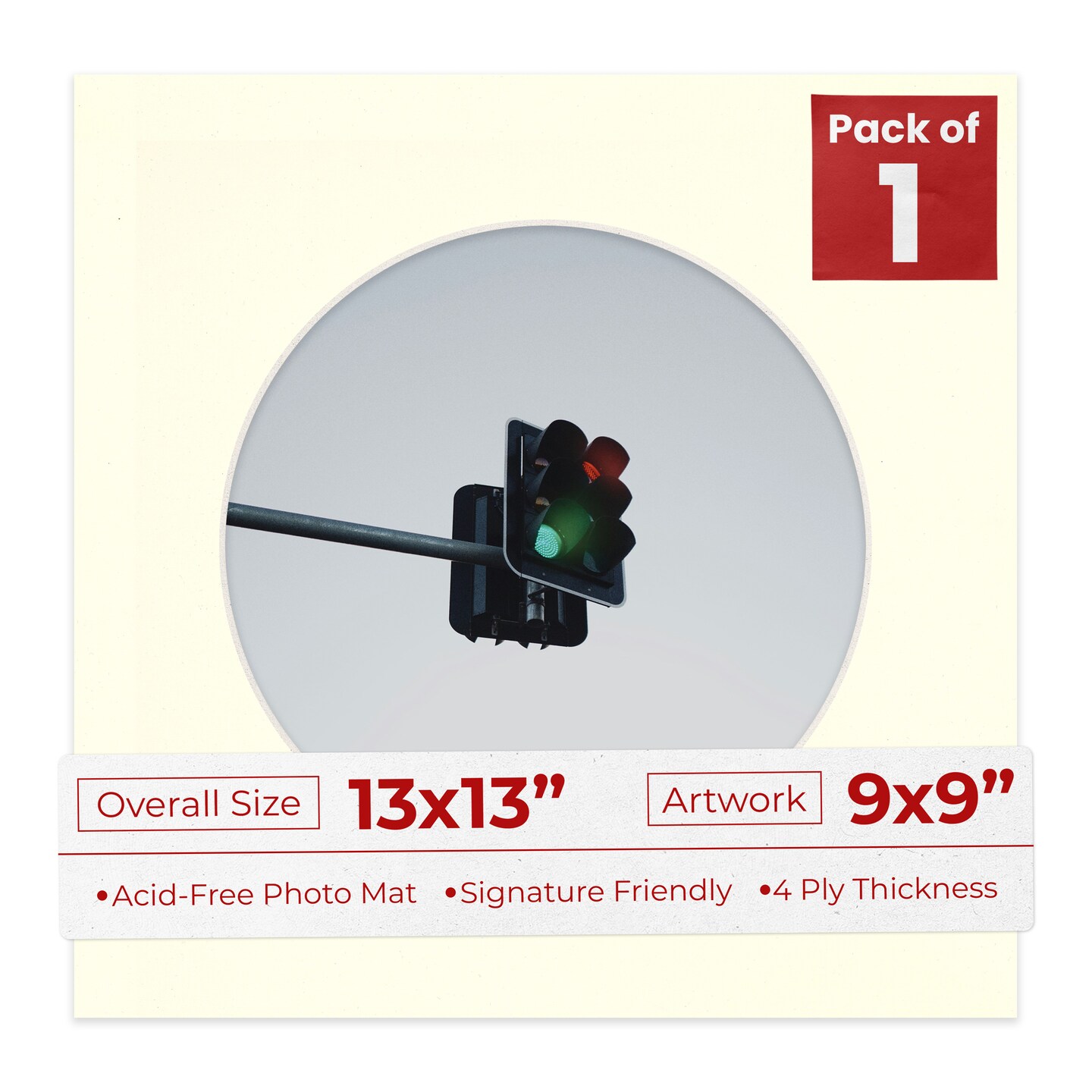 Cream Linen Mat Board for 13x13 Frames - Circle Opening for 9x9 Photos