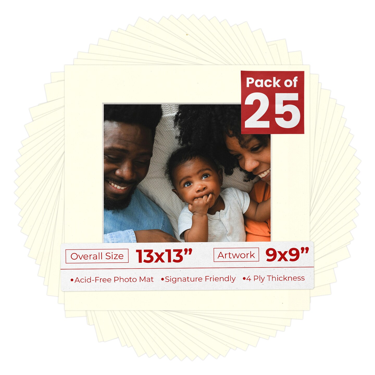 Cream Linen Mat Board for 13x13 Frames - Fits 9x9 Photos
