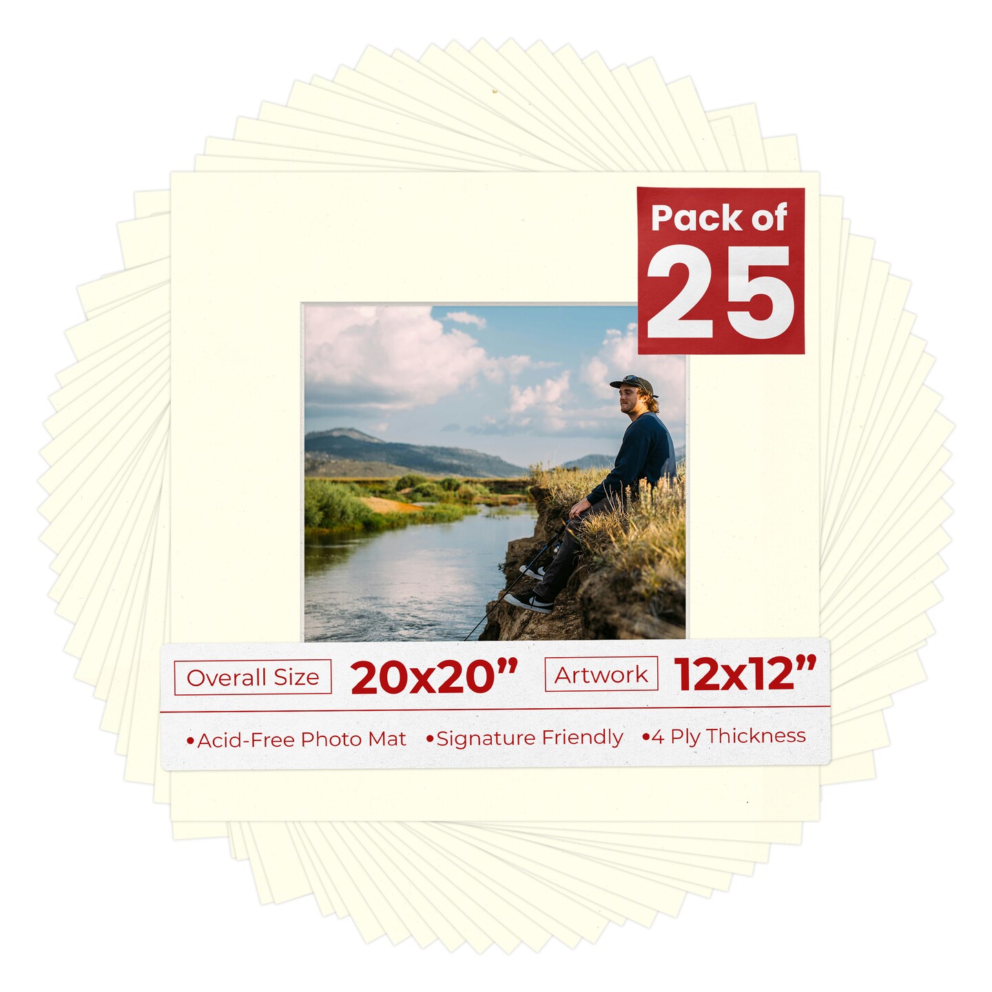 Cream Linen Mat Board for 20x20 Frames - Fits 12x12 Photos