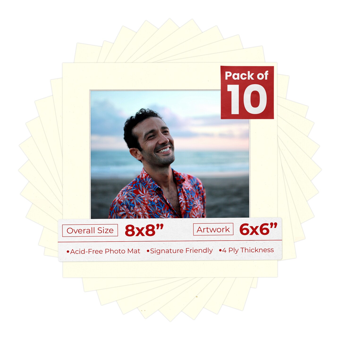 Cream Linen Mat Board for 8x8 Frames - Fits 6x6 Photos