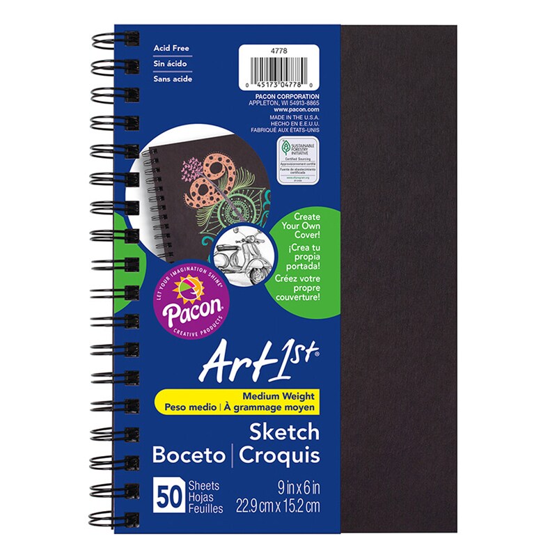 Create Your Own Cover Sketch Diary, Black Chip Cover, 9" X 6", 50 Sheets