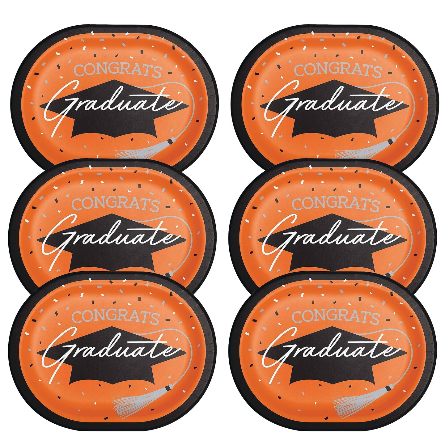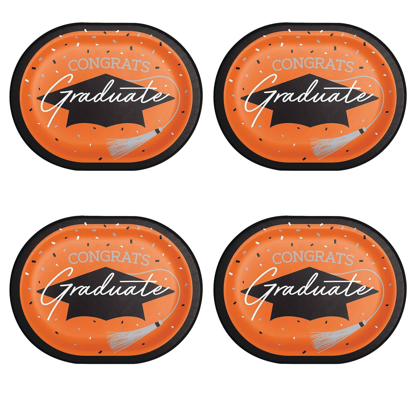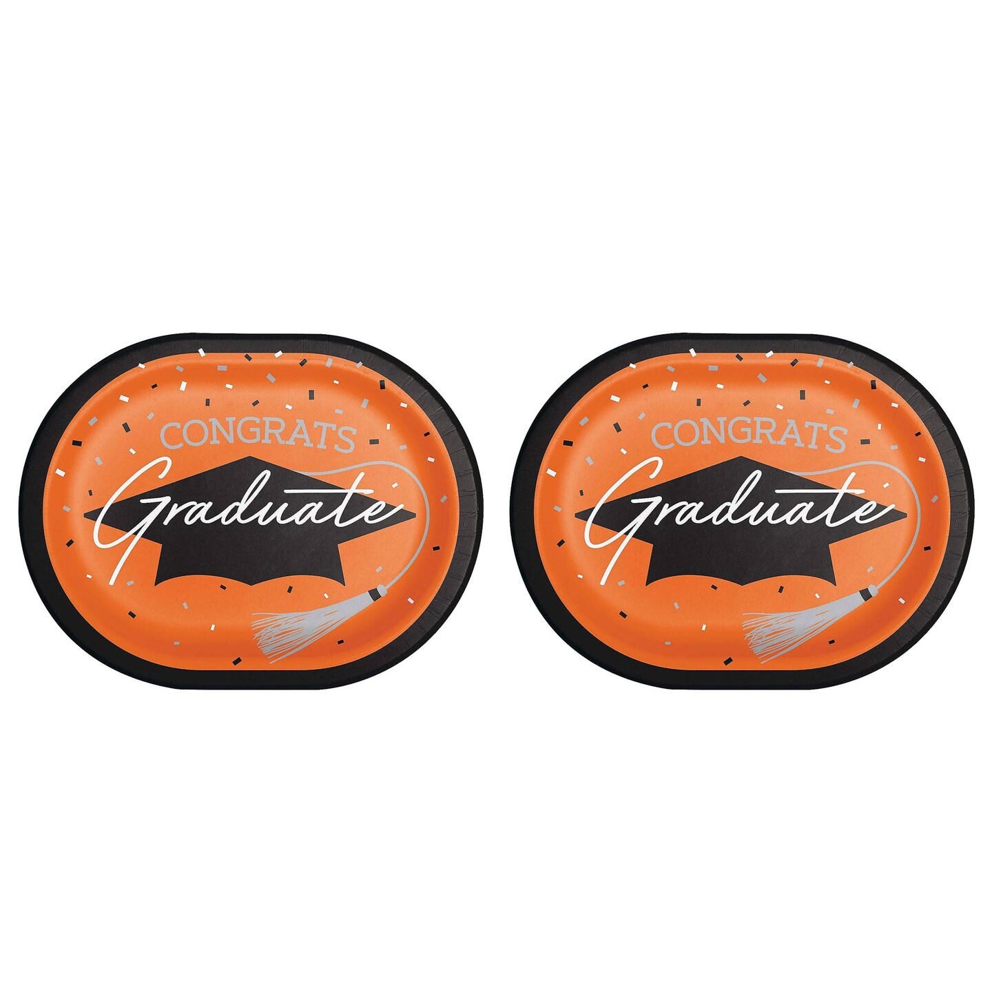 Creative Converting School Spirit Orange Graduation Oval Paper Platters 24ct