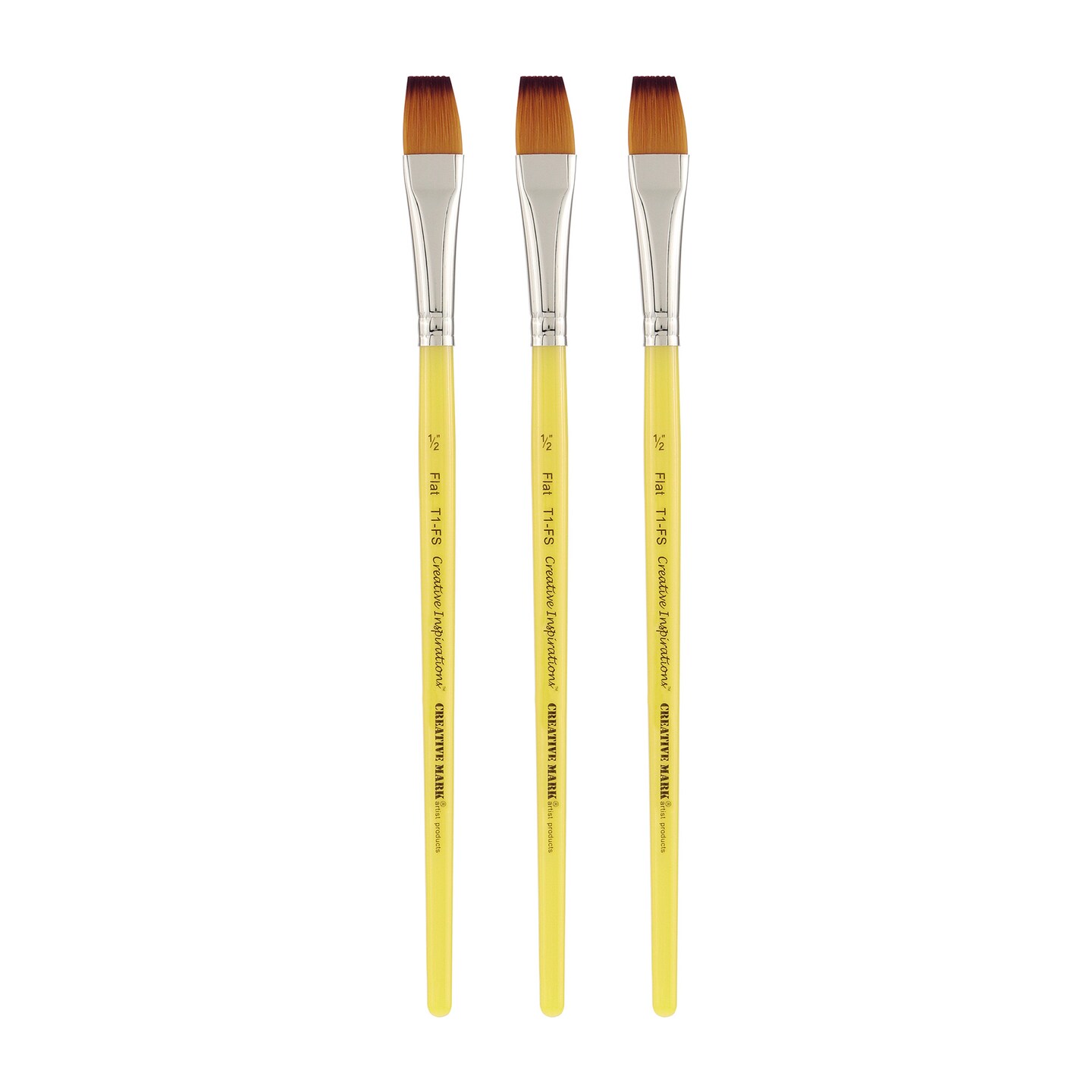 Creative Inspirations Dura-Handle Flat Short Handle Paint Brush Set of 3- Solid Resin Handle, Synthetic Taklon Paint Brushes, Flat Brush for Oils, Acrylics, Watercolors - Handles Will Not Chip or Crack